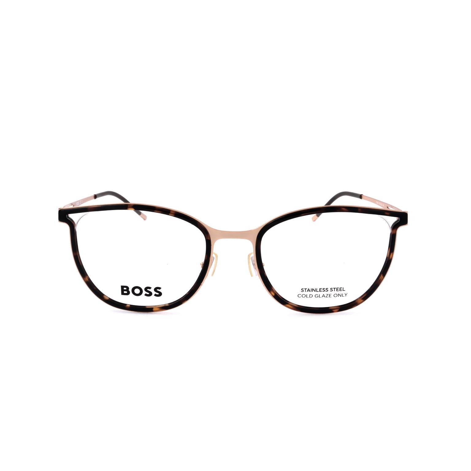 These HUGO BOSS occhiali showcase a refined cat-eye silhouette that emphasizes a sharp, architectural upper rim. The bridge design creates a balanced proportion with the 53mm lenses, ensuring a stable fit. Delicate temples flow seamlessly from the hinges, resulting in a streamlined profile that prioritizes a clean, uncluttered aesthetic suitable for high-end retail displays.