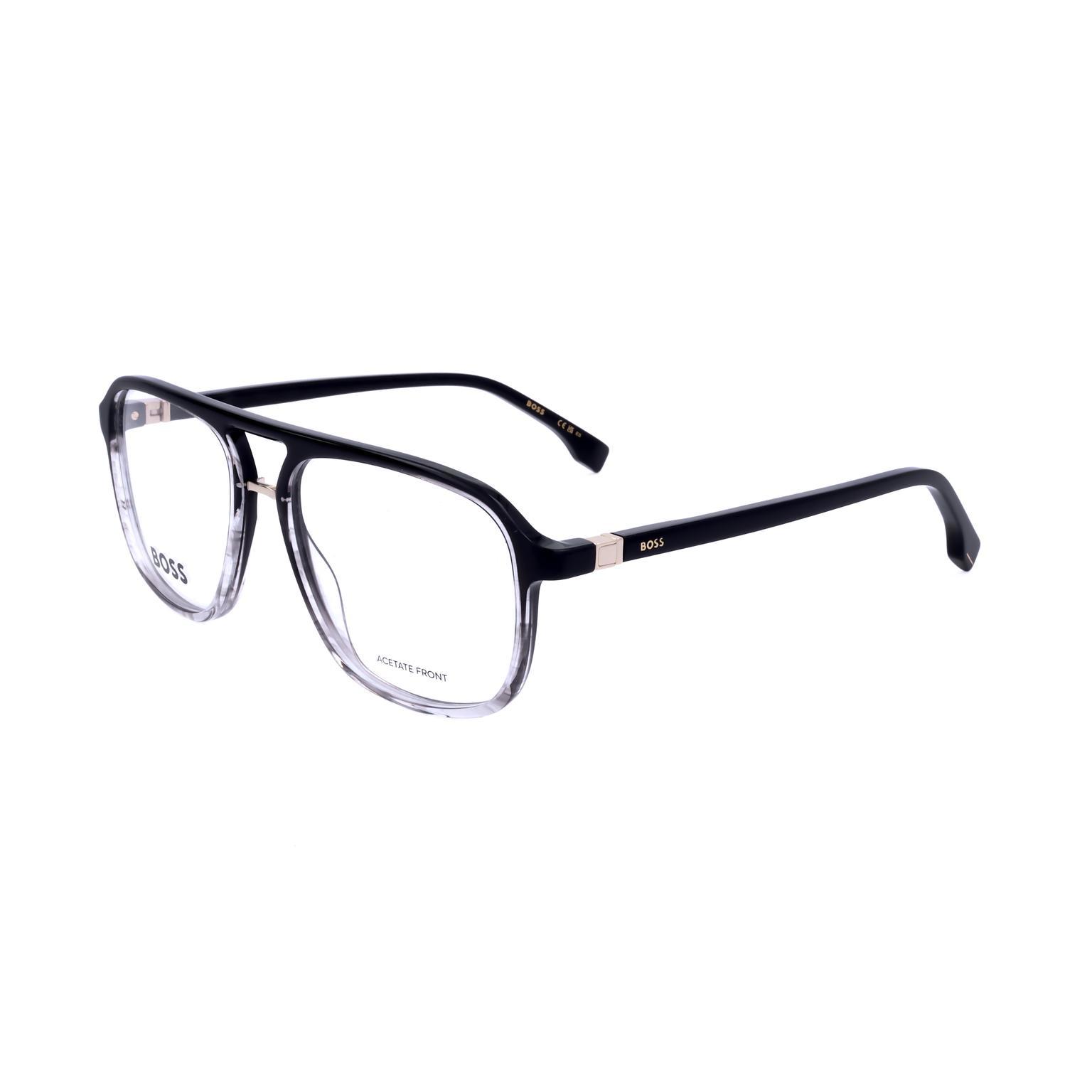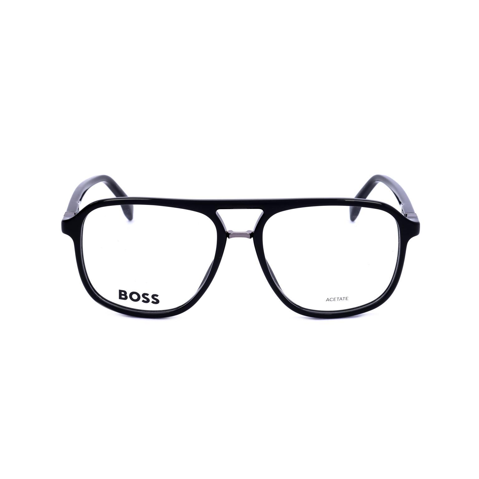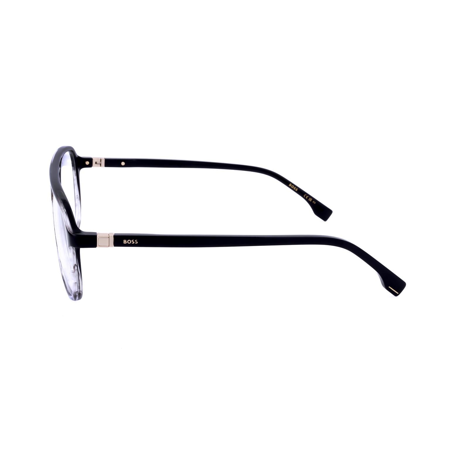 This eyewear selection from HUGO BOSS showcases a geometric silhouette with softened corners, offering a refined architectural aesthetic. The frames feature a distinct matte surface treatment that interacts subtly with light, providing a sophisticated alternative to high-gloss finishes. The straight brow line and integrated bridge create a cohesive profile that emphasizes precise craftsmanship.