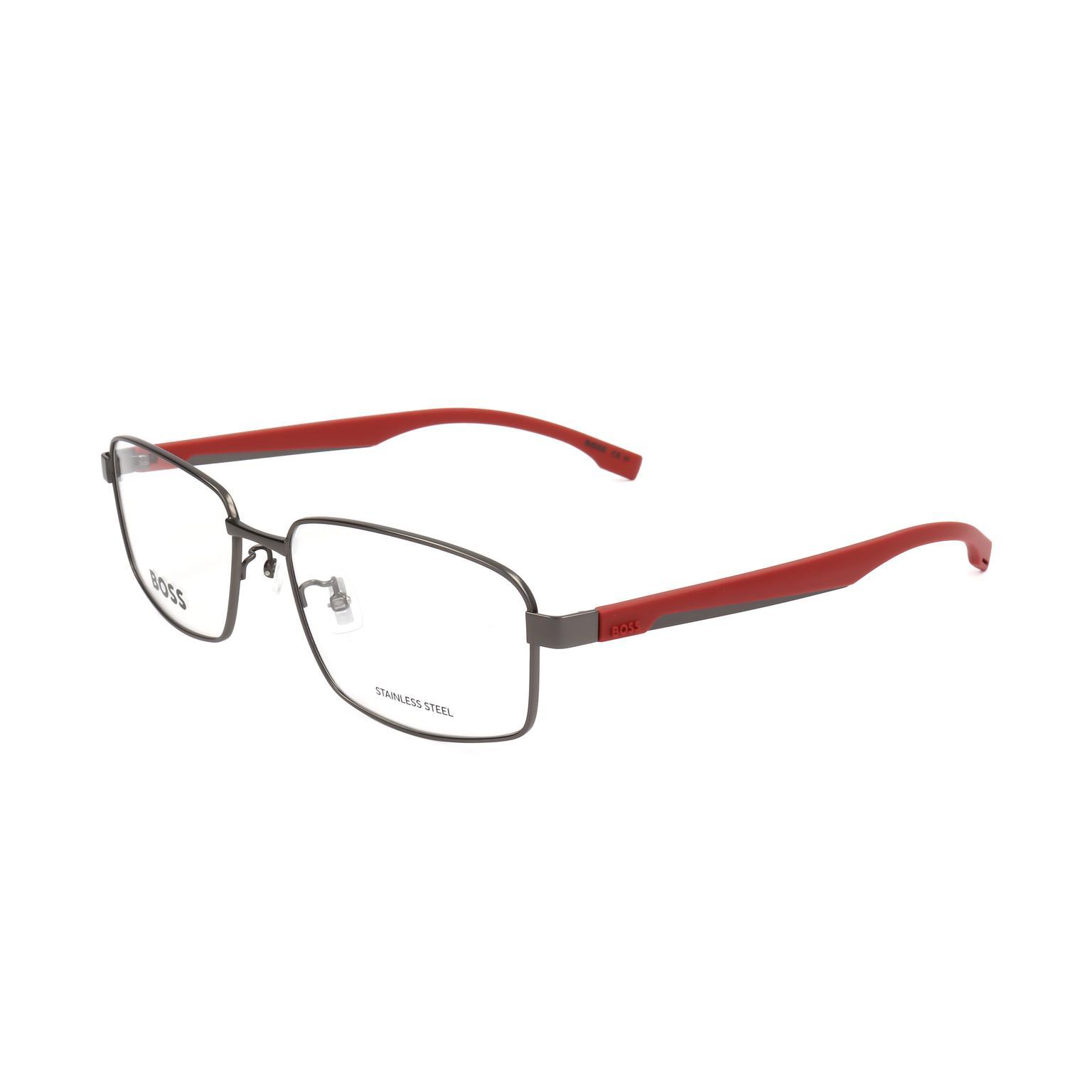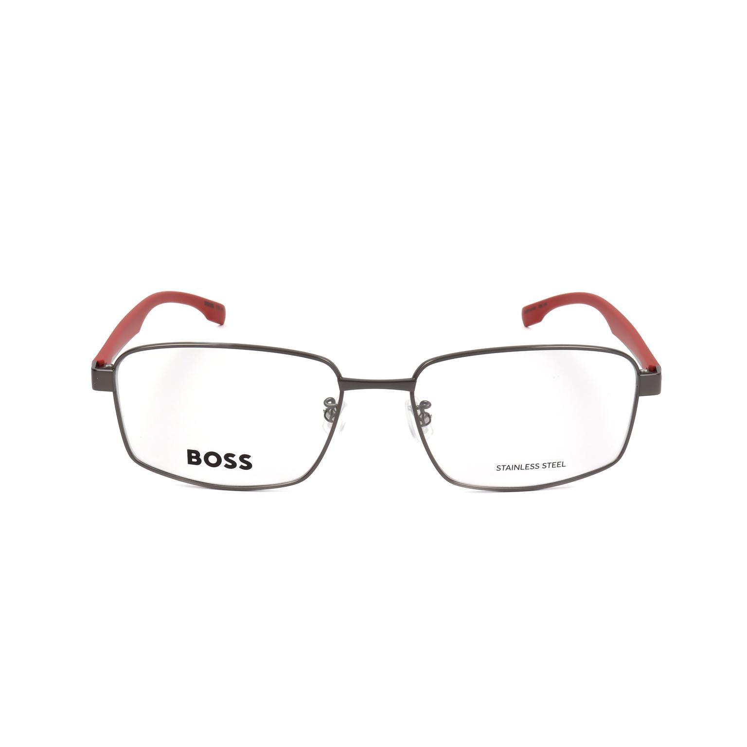 These HUGO BOSS eyewear frames showcase a distinct half-rim construction, designed for a refined and contemporary aesthetic. The angular lens shape is complemented by slim, sculpted temples and a subtle, robust bridge, reflecting a sleek design philosophy. Discreet BOSS branding is visible on the lens, affirming its premium origin.