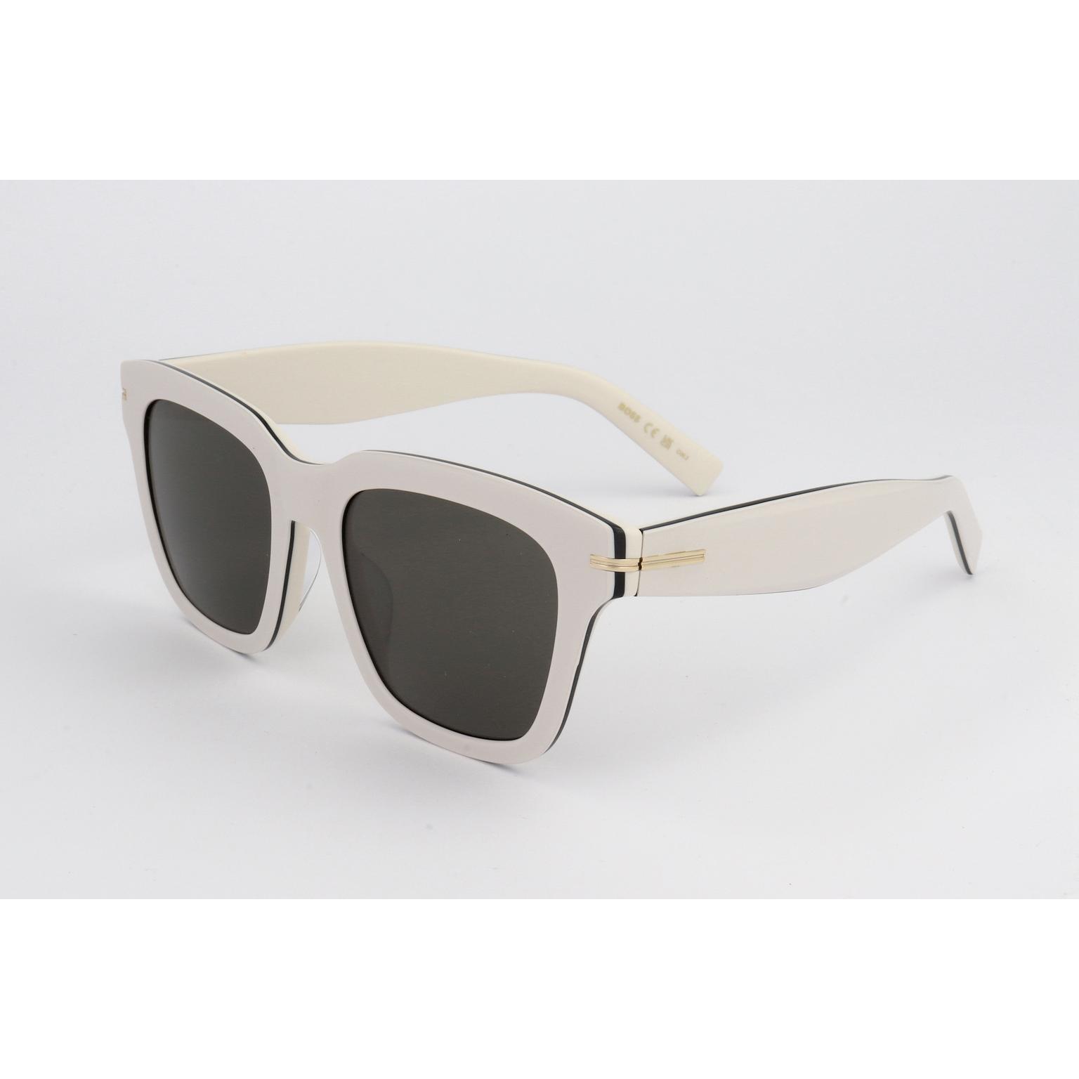 These women's sunglasses by HUGO BOSS feature a structured and modern aesthetic, crafted for commercial appeal. The substantial frame presents a clean, squared profile that conveys a sense of refined strength and distinctive style.The construction utilizes ECO ACETATE, a responsibly sourced material known for its robustness and sleek finish. This sustainable fabric, derived from natural components, ensures longevity and a pleasant feel. With 52mm diameter lenses and a 19mm bridge, these sunglasses offer a secure and comfortable wear.