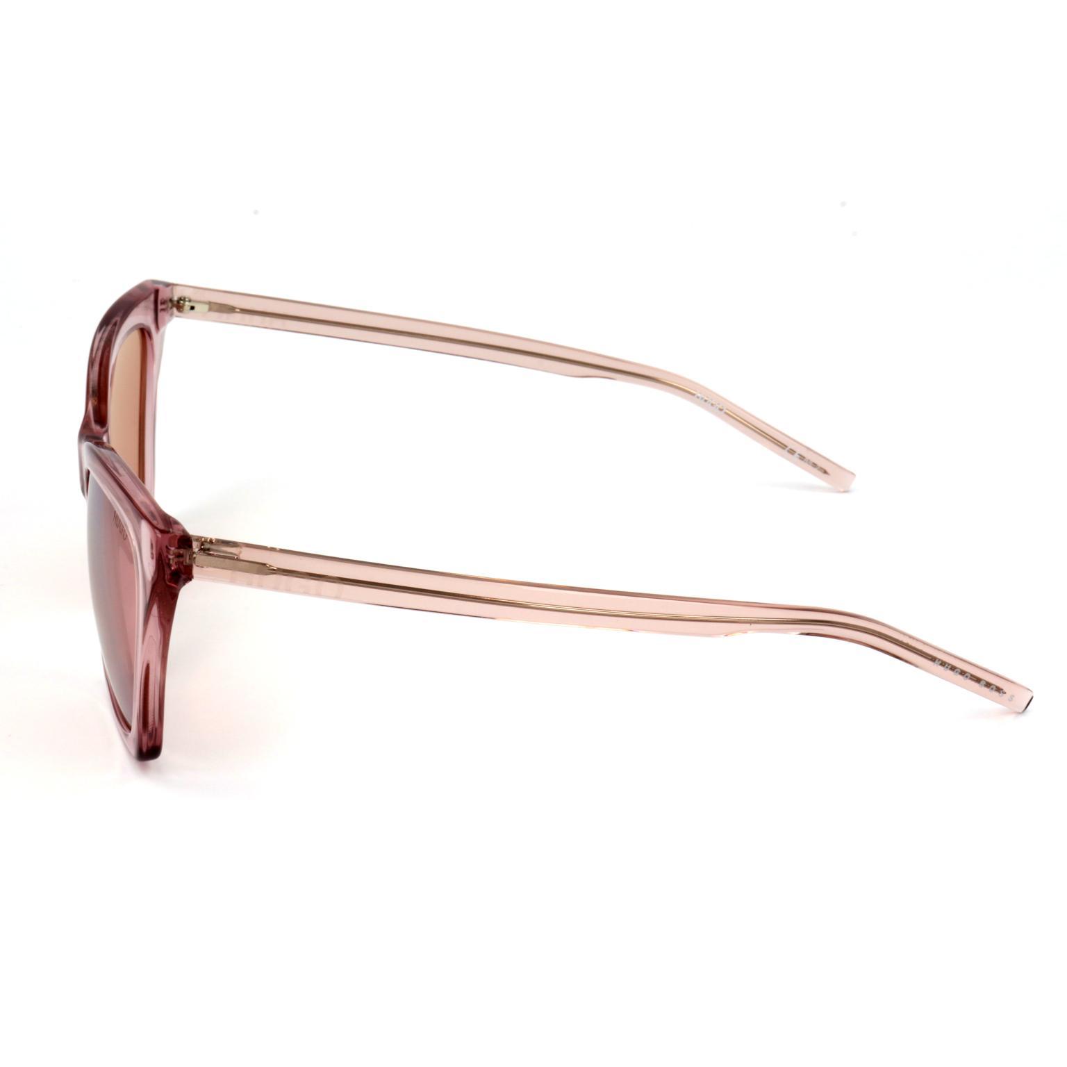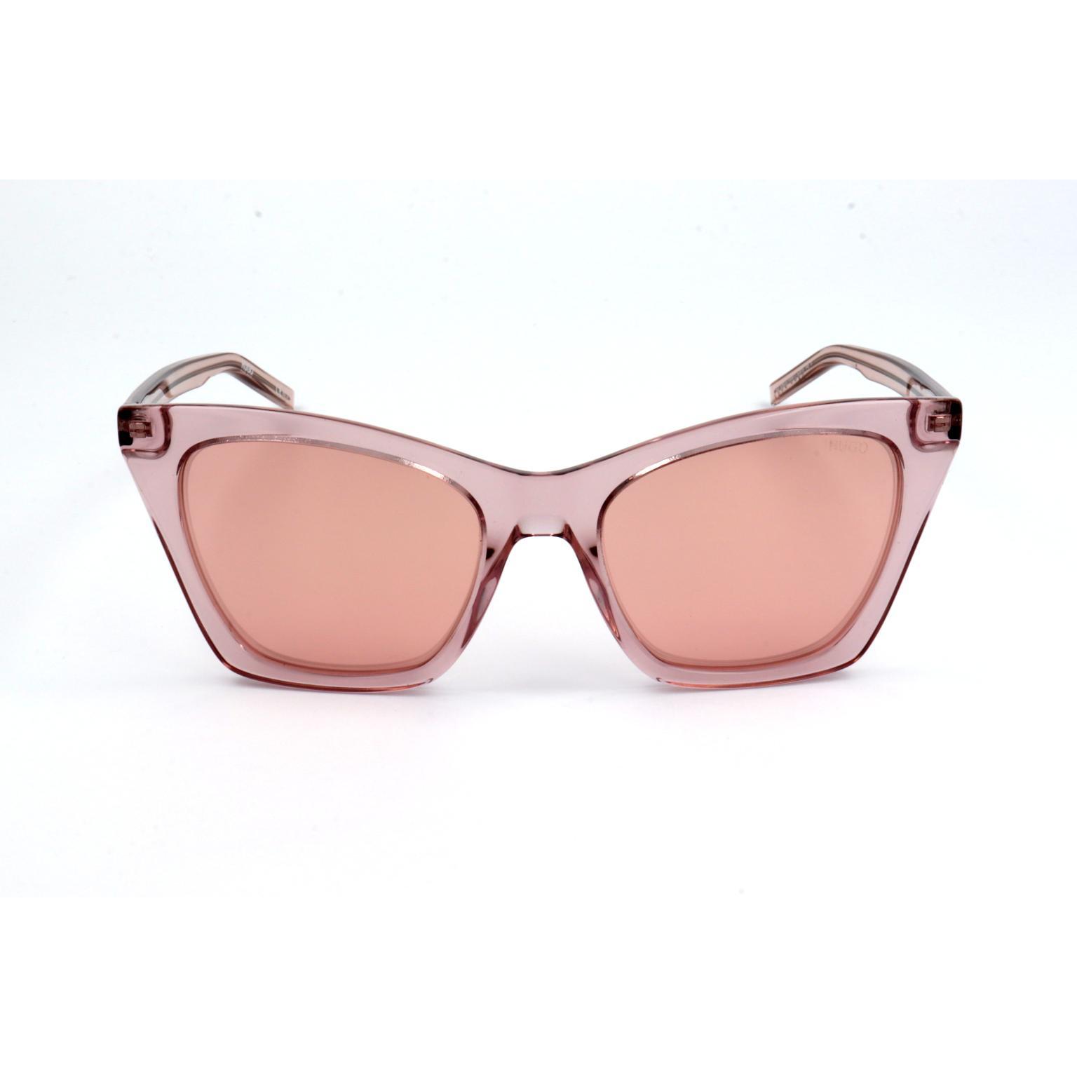 This pair of OCCHIALI by HUGO showcases a sophisticated cat-eye silhouette characterized by sharp, angular edges and a robust frame construction. The integrated nose bridge and contoured temples ensure a secure fit, while the visible internal hardware provides a glimpse into the meticulous engineering behind the accessory.