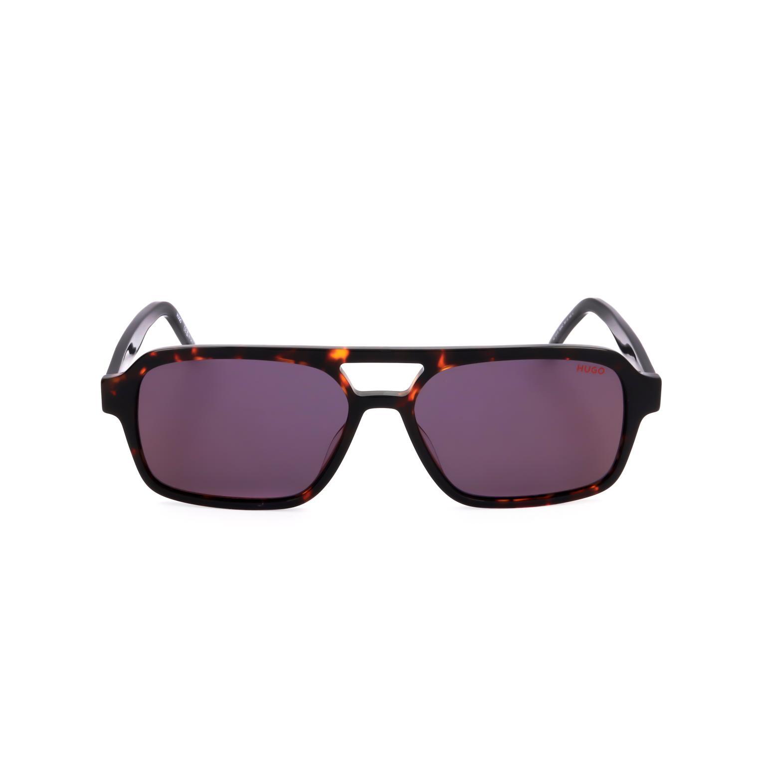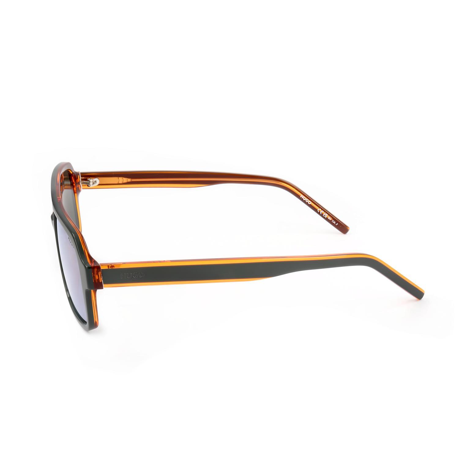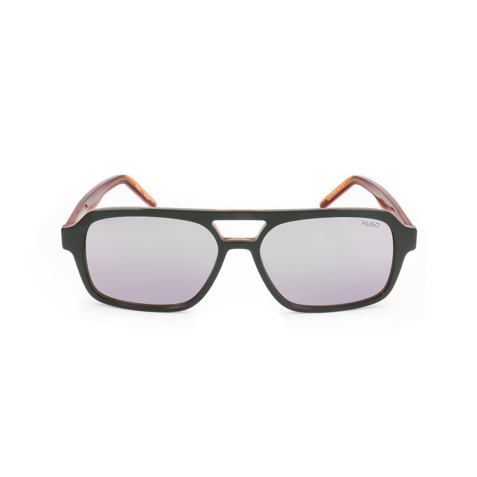 These HUGO men's sunglasses showcase a bold, squared-off frame with a distinctive double bridge, offering a confident and contemporary profile. The robust design is complemented by well-defined temples that ensure a stable fit, making them a significant accessory. Key dimensions include a lens diameter of 56mm and a bridge width of 15mm. Crafted from high-quality acetate, these eyewear pieces are valued for their exceptional resilience and a comfortable, lightweight feel. Acetate is also celebrated for its ability to hold rich, intricate patterns and a smooth, polished finish, providing lasting aesthetic appeal and structural integrity.