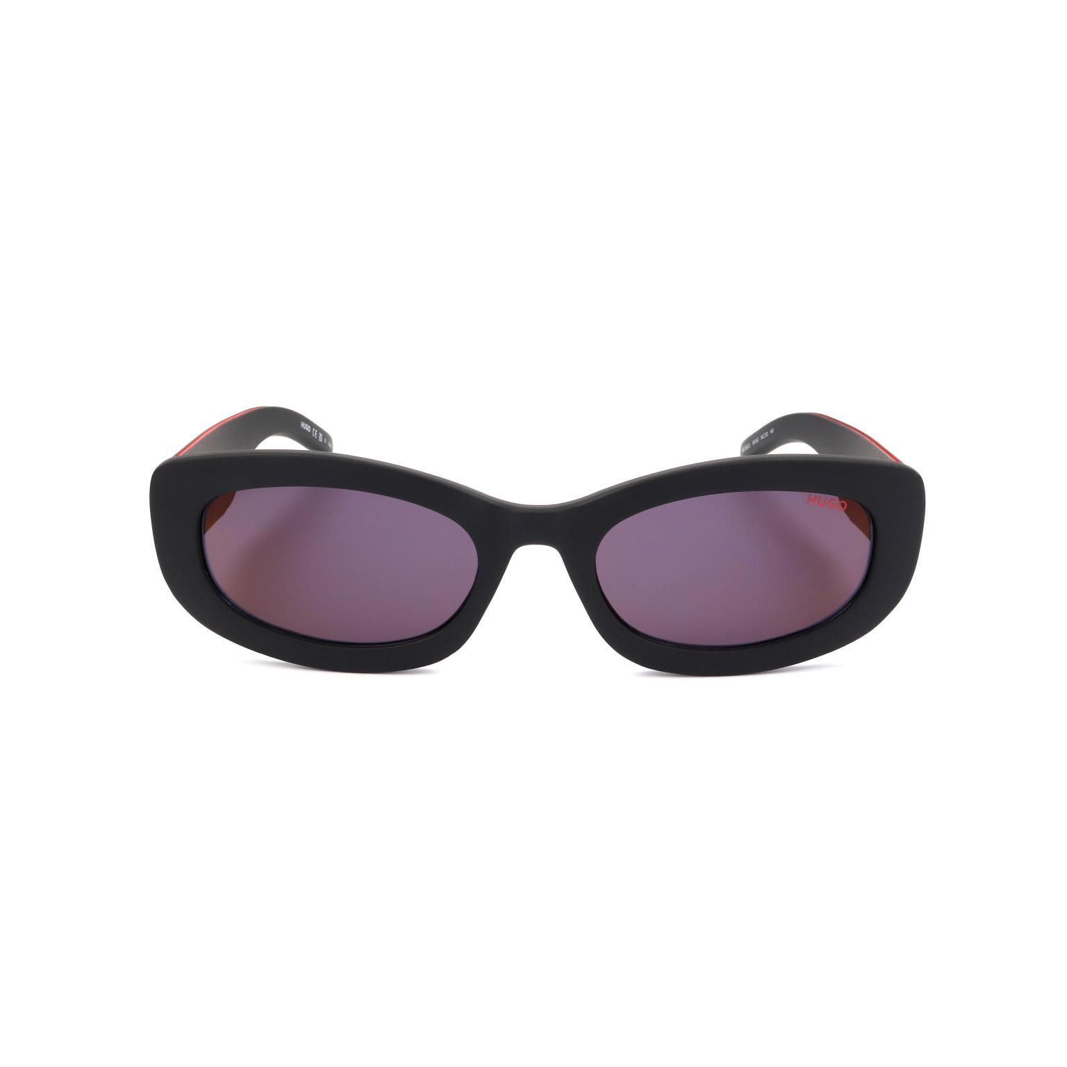 These women's sunglasses by HUGO feature a distinct, elongated oval frame, offering a modern and impactful aesthetic. The substantial profile of the frame is smoothly sculpted, creating a cohesive visual statement that captures attention with its clean lines.