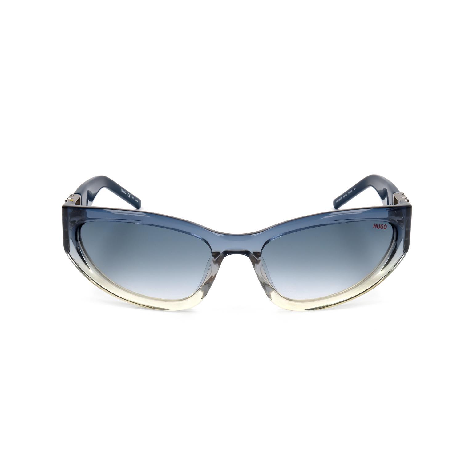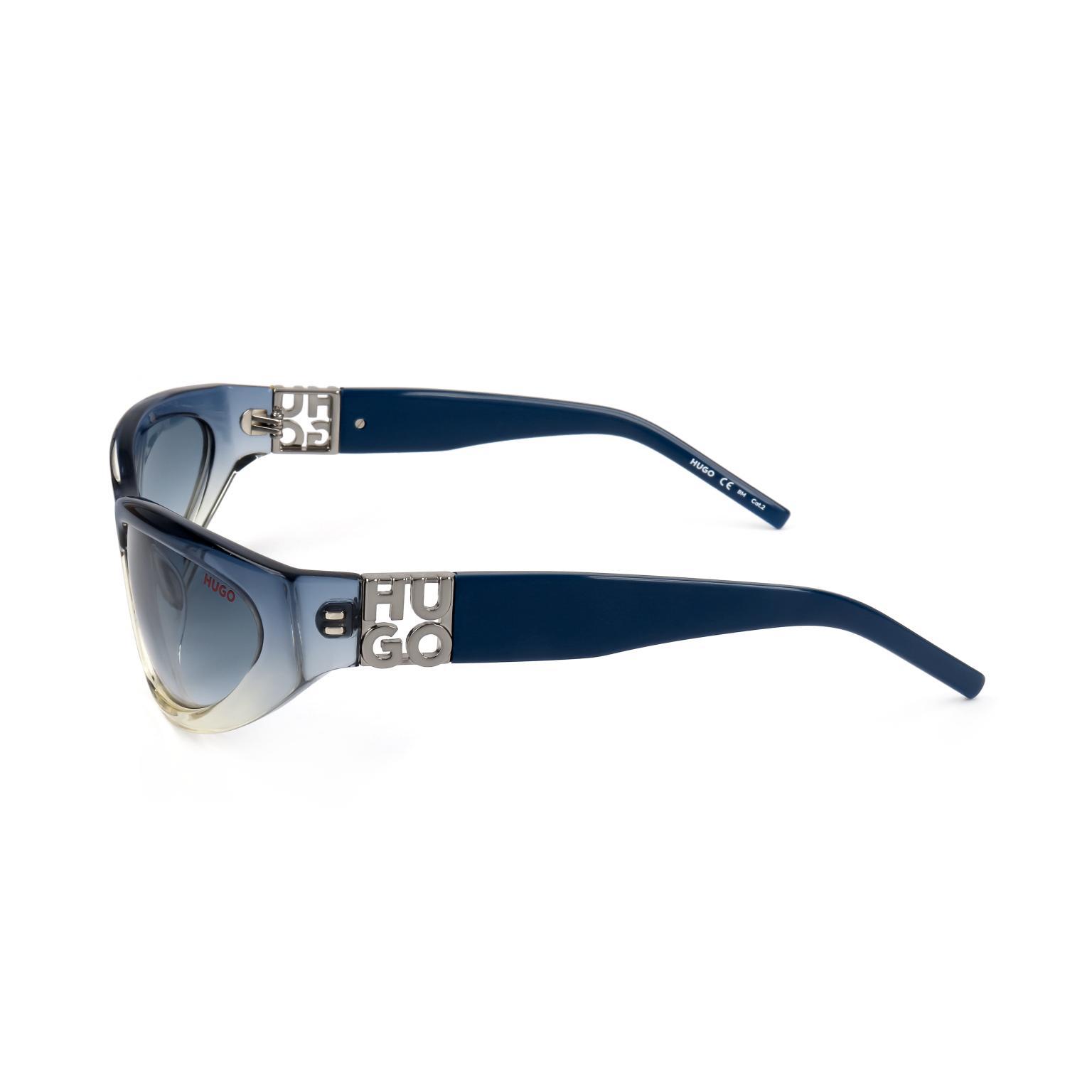 These HUGO men's sunglasses offer a striking and refined silhouette, designed with a prominent frame that commands attention. The angular lines across the brow and the sweeping curve along the lower edge provide a distinctive profile, enhanced by the gradient effect visible within the frame material itself. Substantial temples add to the eyewear's assertive presence, promising a secure fit.Constructed from high-quality acetate, these sunglasses boast both resilience and a pleasant feel against the skin. The acetate ensures a lightweight yet sturdy build, offering comfortable wear and a luxurious sheen that underlines the superior craftsmanship. This material also provides exceptional dimensional stability, making it a robust choice for daily use.