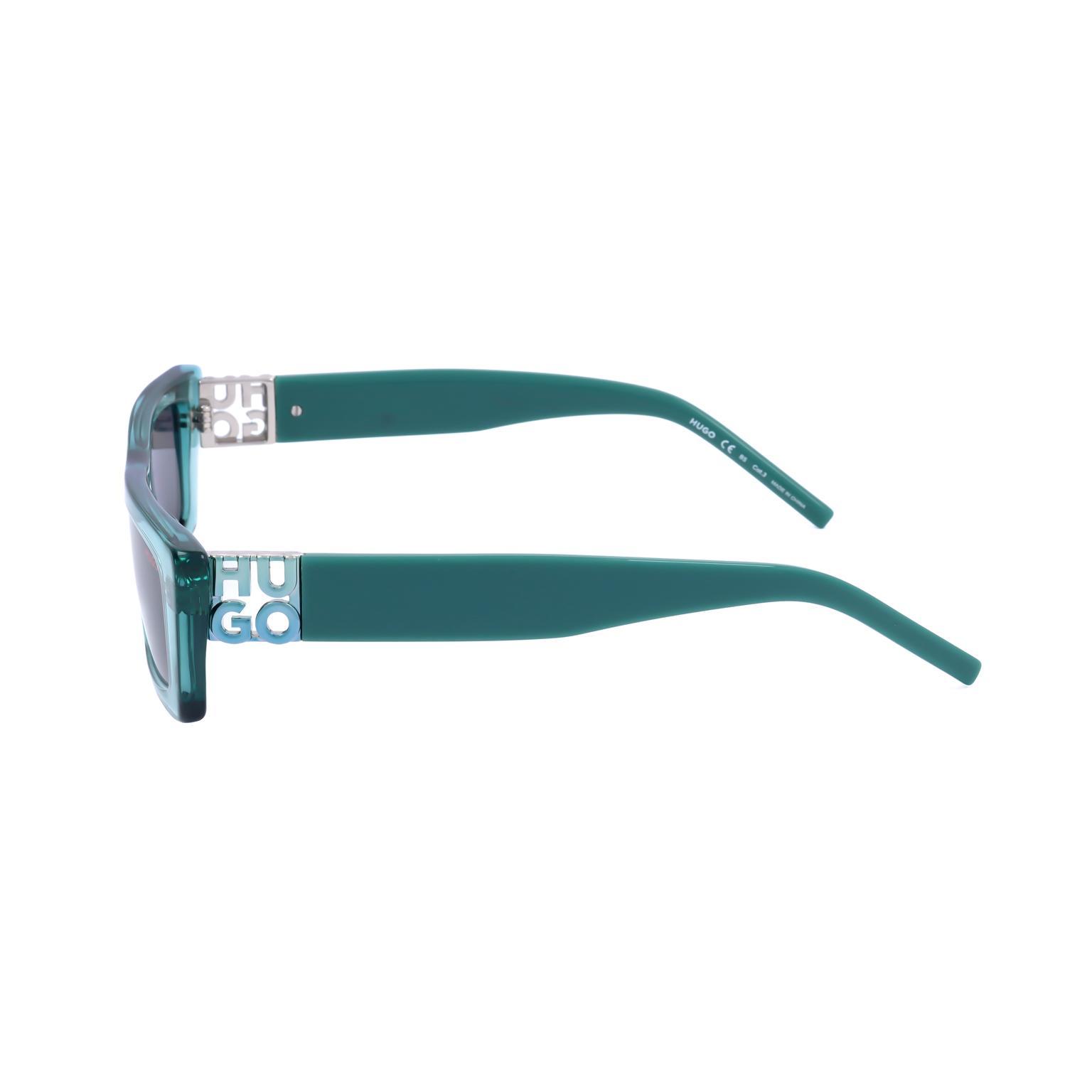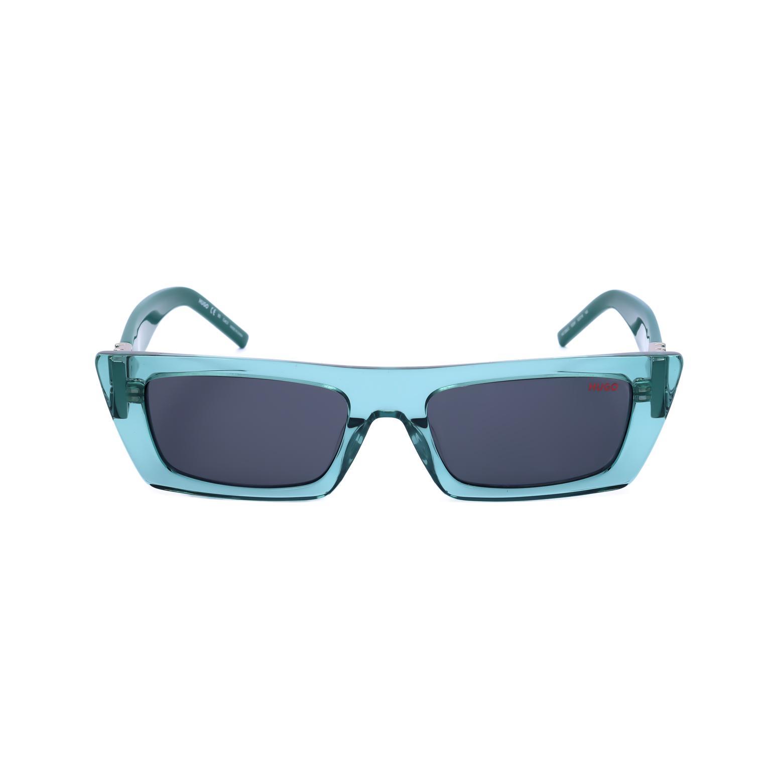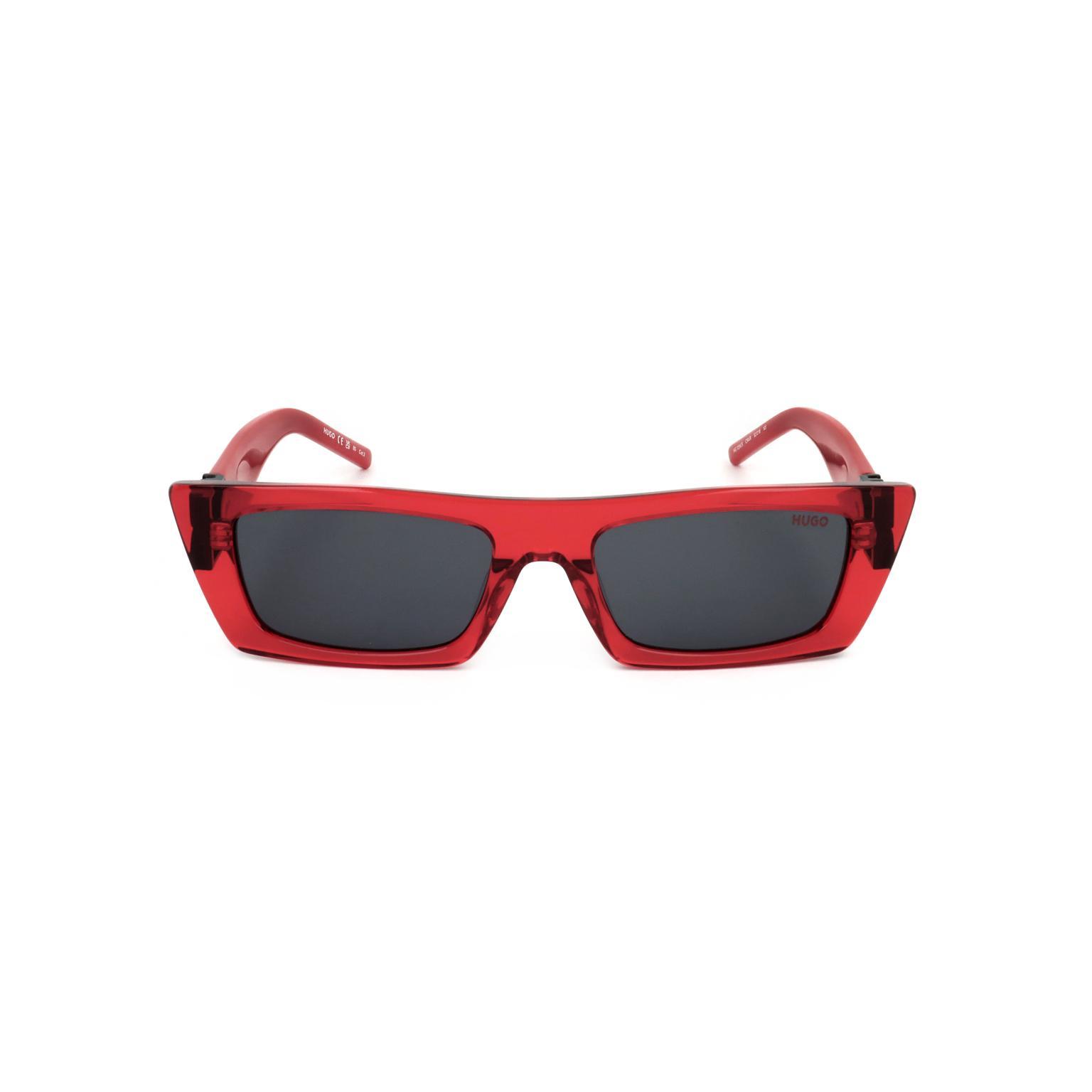 These HUGO sunglasses showcase a distinctive rectangular frame, subtly tapered at the edges for a modern, angular profile. The solid construction and dark lenses create a striking visual presence, positioning them as a compelling addition to any curated accessories selection.