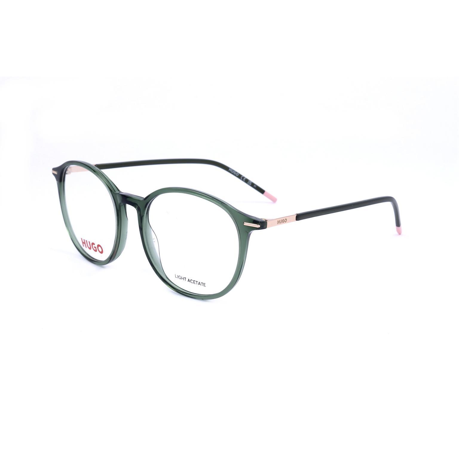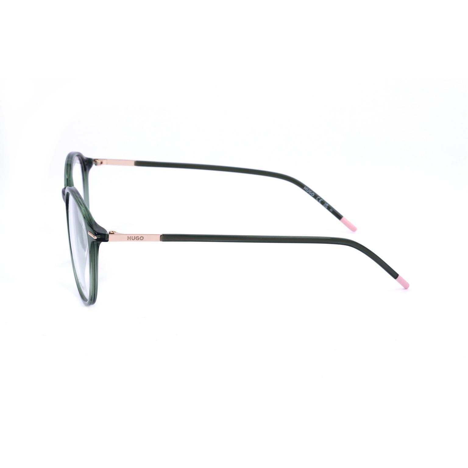These HUGO women's sunglasses offer a refined aesthetic with their classic round frame, presenting a sleek profile. The slender temples and integrated bridge contribute to an overall design that is both minimalist and sophisticated, suitable for a discerning clientele.