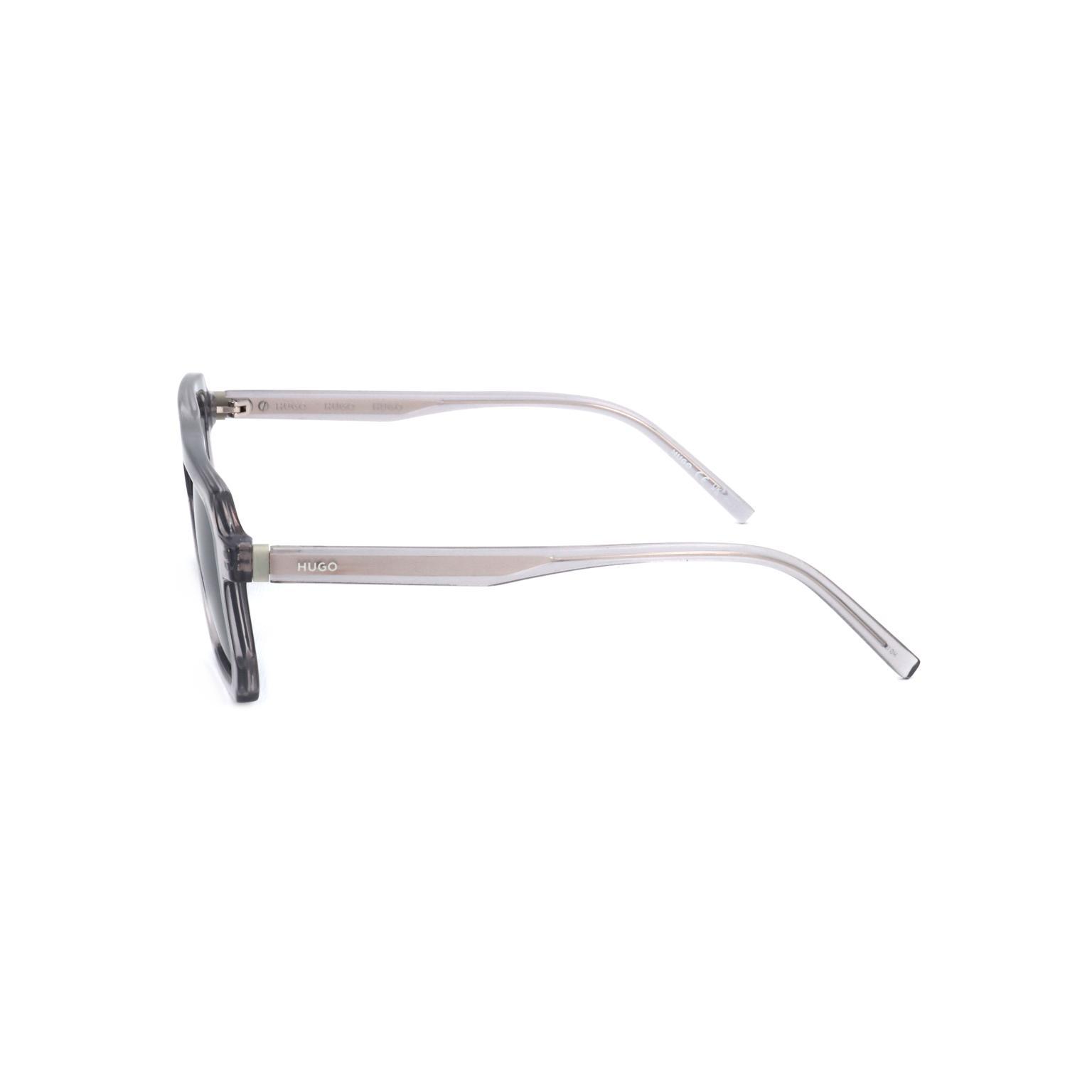 These men's sunglasses by HUGO showcase a contemporary and assertive design, featuring a broad, angular frame and a prominent brow line that confers a distinctive aesthetic. The gradient lenses are subtly integrated, complementing the frame's robust structure.
