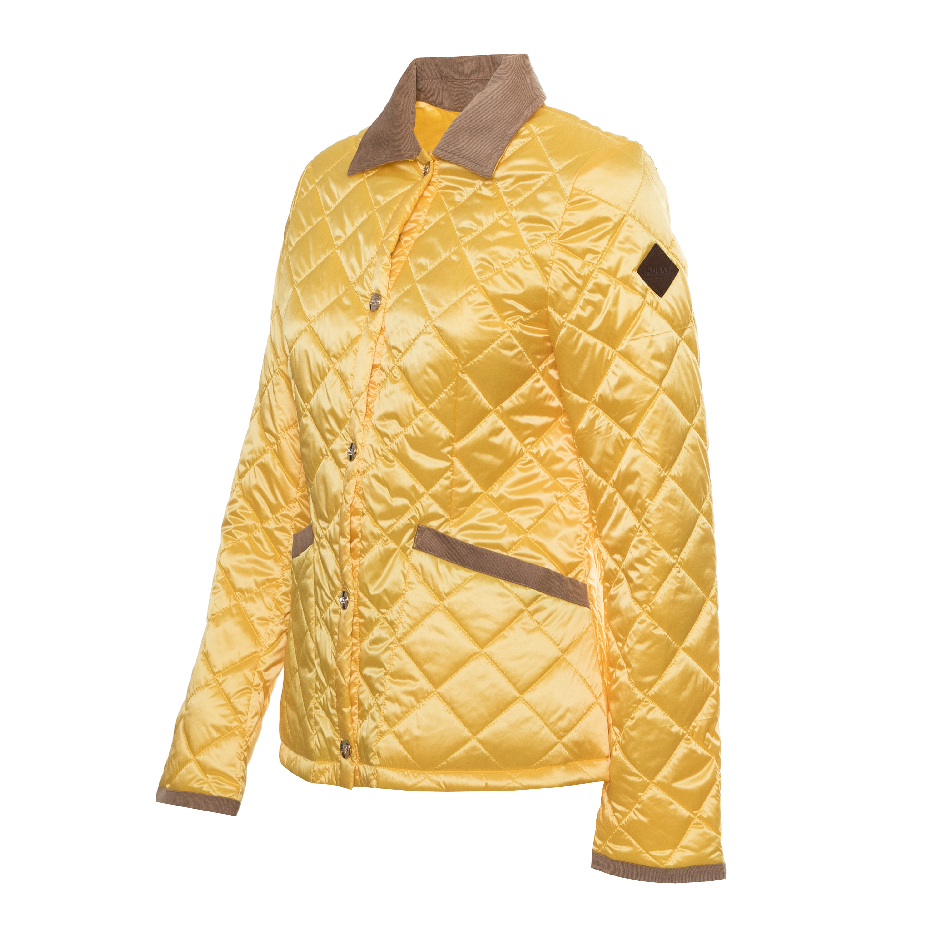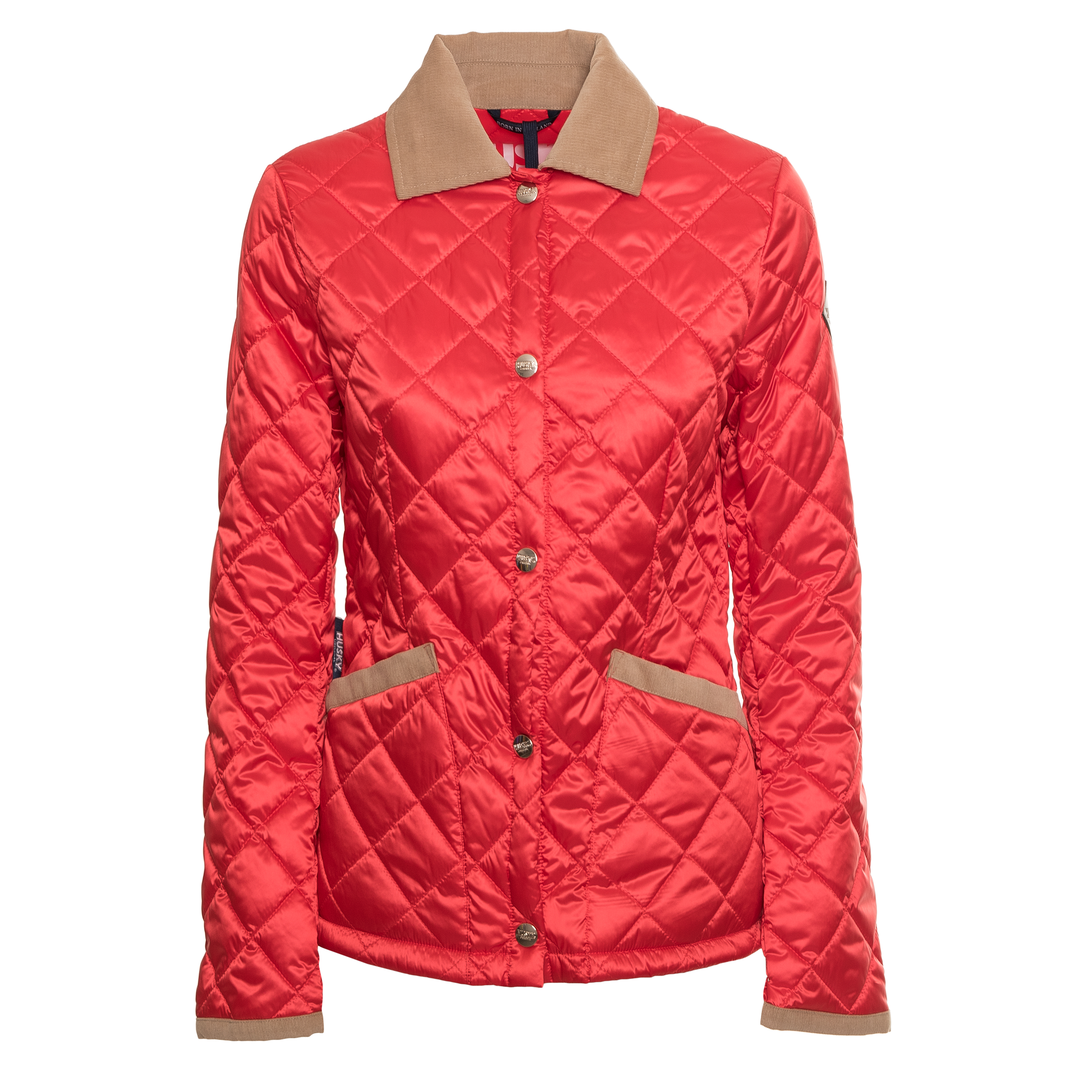 PADDED JACKET, FOR WOMEN, POCKETS, QUILTED, BI-COLOR, VELVET INSERTS, PRESS STUDS CLOSURE, WITH LOGO