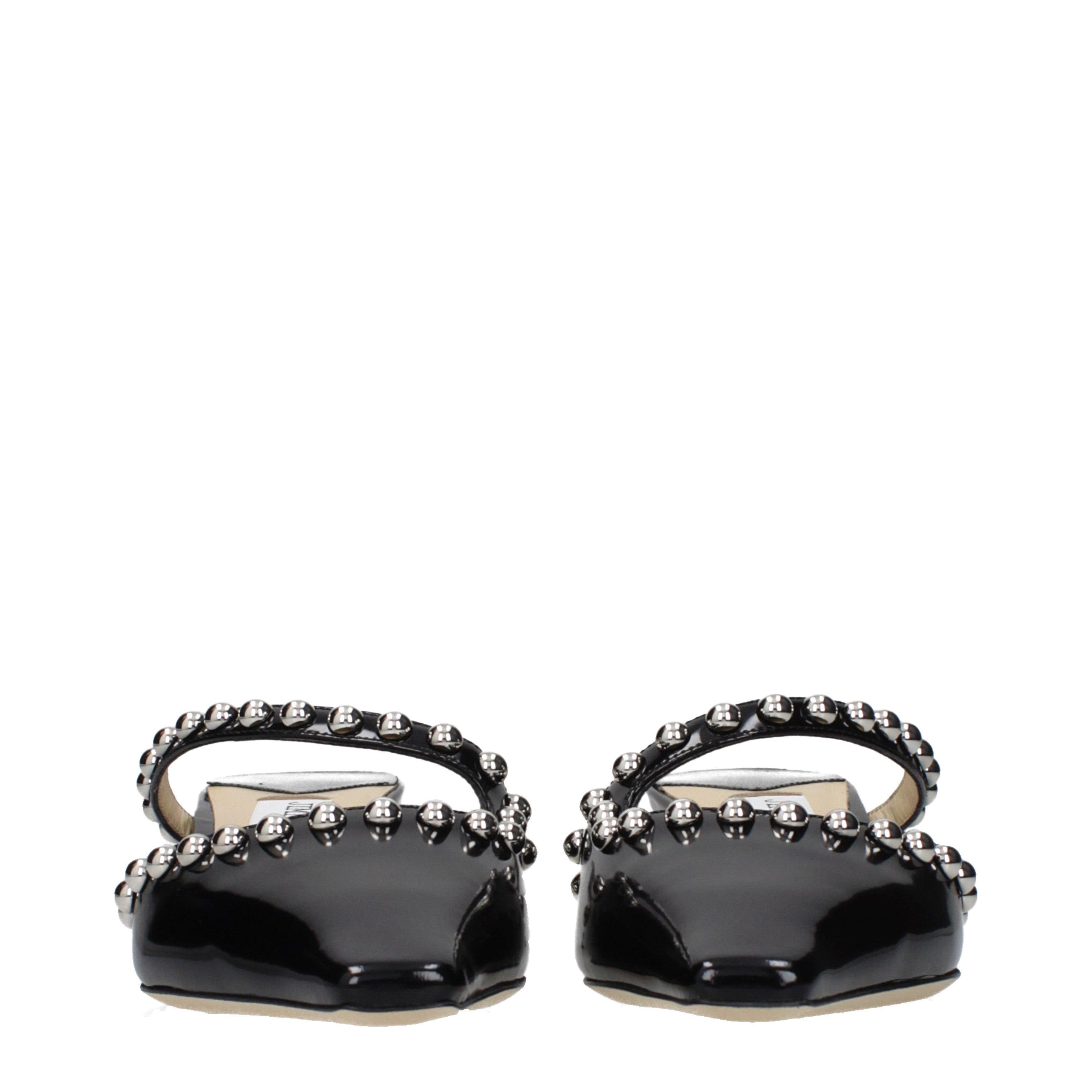 This ros shoe by JIMMY CHOO is defined by its sharp, angular silhouette and a minimalist open-back construction. The design features a distinctive pointed toe and two slender straps across the vamp, which are meticulously embellished with small metallic spheres. These details provide a structured texture that enhances the overall geometric aesthetic of the footwear, creating a look that is both disciplined and refined.