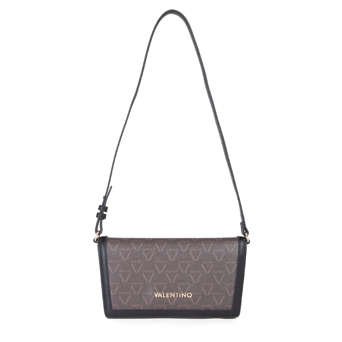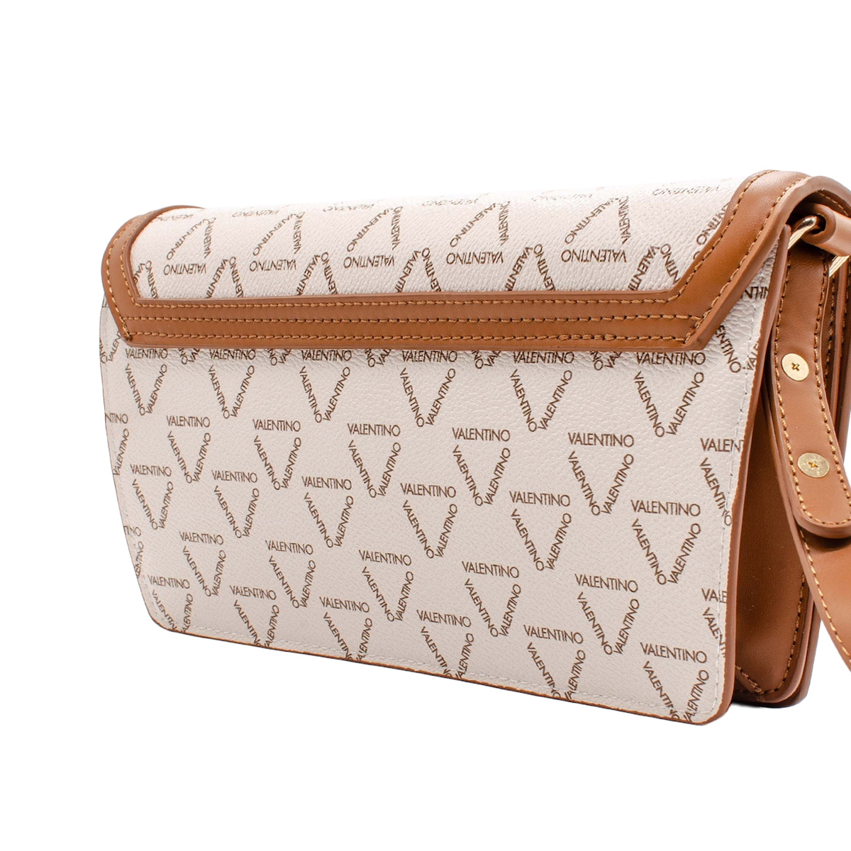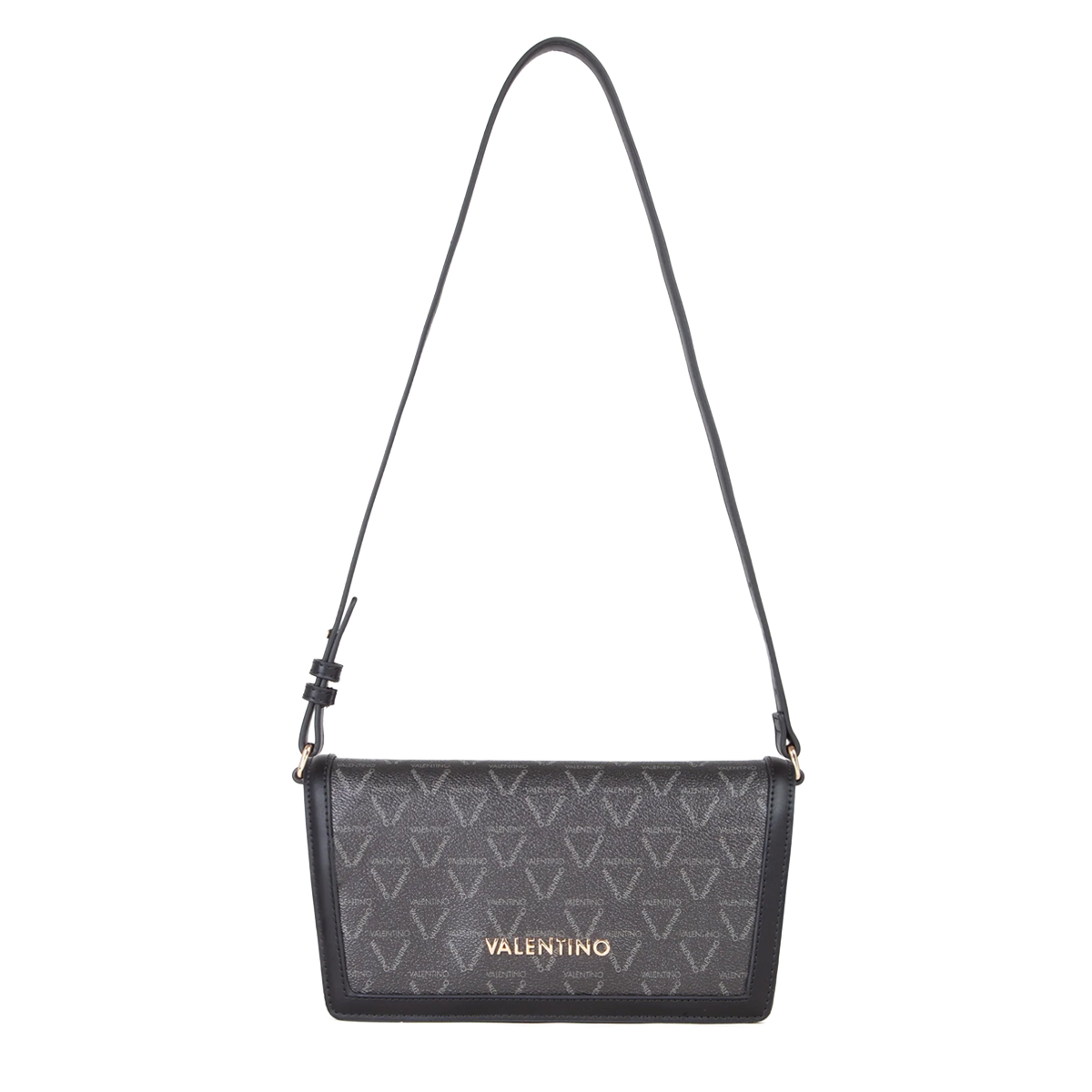 This shoulder bag LADY RE by MARIO VALENTINO is characterized by its sleek, rectangular silhouette and balanced proportions. The design features a front flap secured by a magnet, providing a seamless look that highlights the geometric precision of the construction. Contrasting frames along the edges accentuate the clean lines, while the prominent metallic logo serves as a focal point of brand identity.