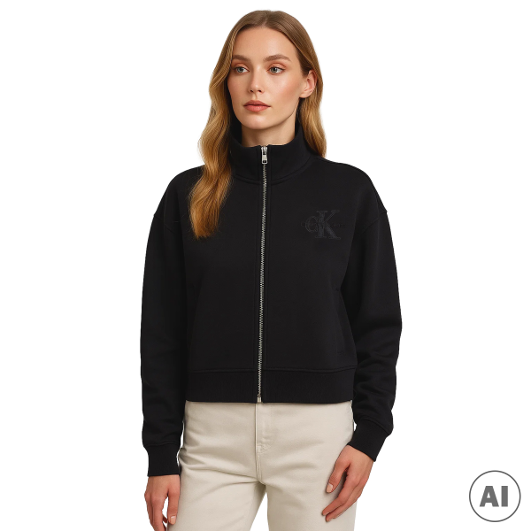 SWEATSHIRT, FOR WOMEN, LONG SLEEVES, SOLID COLOUR, EMBROIDERED LOGO, ZIP CLOSURE