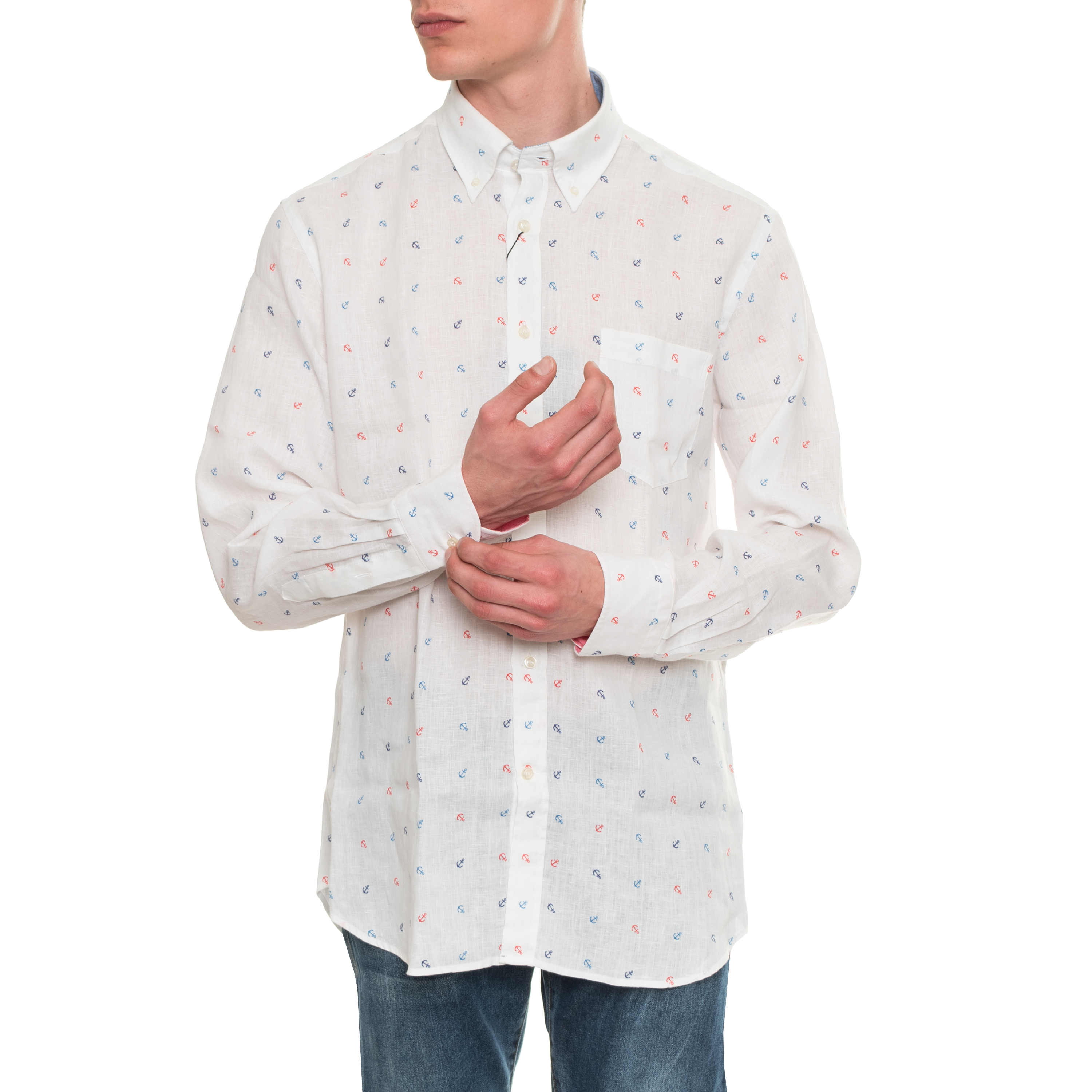 SHIRT, FOR MEN, WITH POCKET, BUTTON DOWN, REGULAR FIT, LONG SLEEVES, PATTERNED, WITH LOGO, BUTTONS CLOSURE