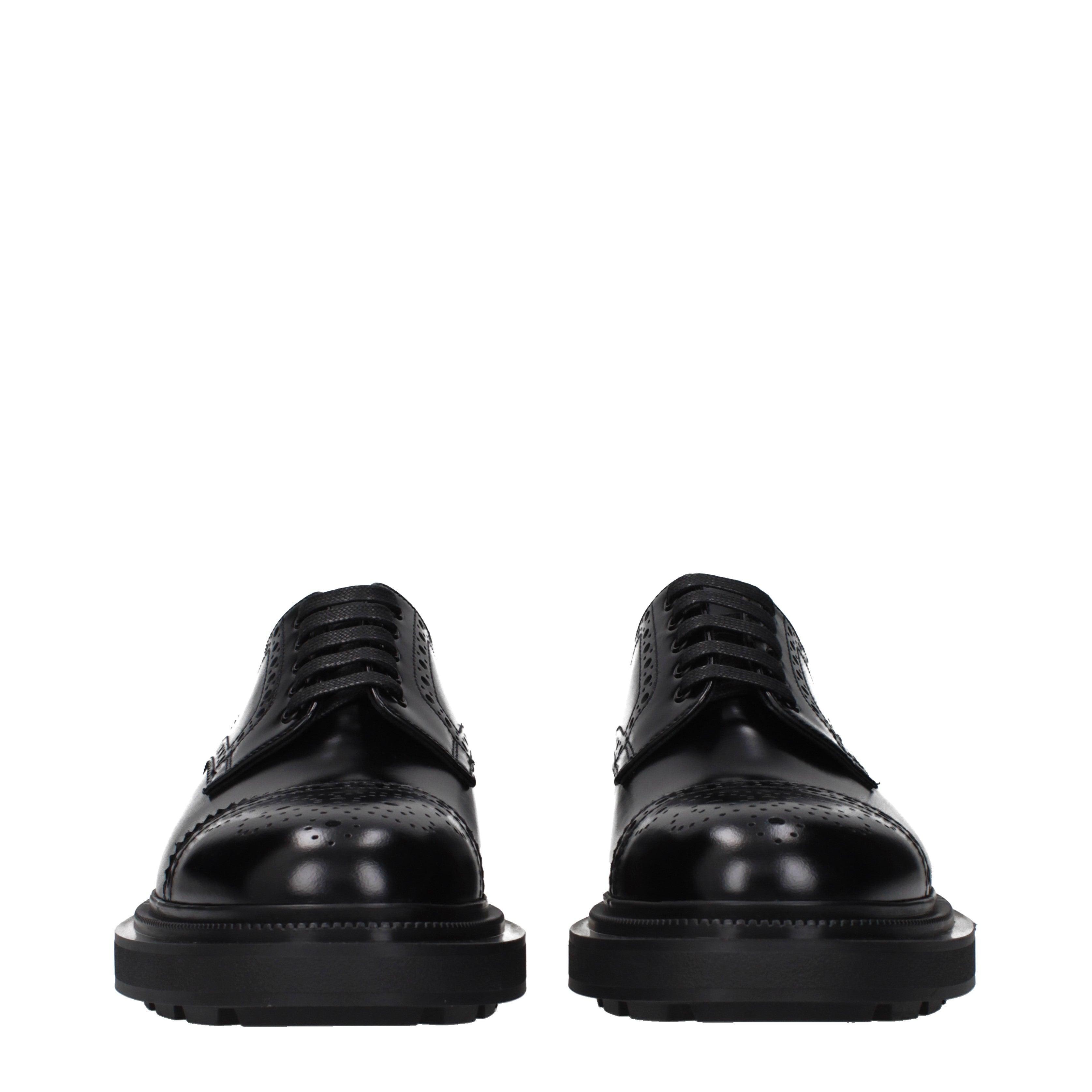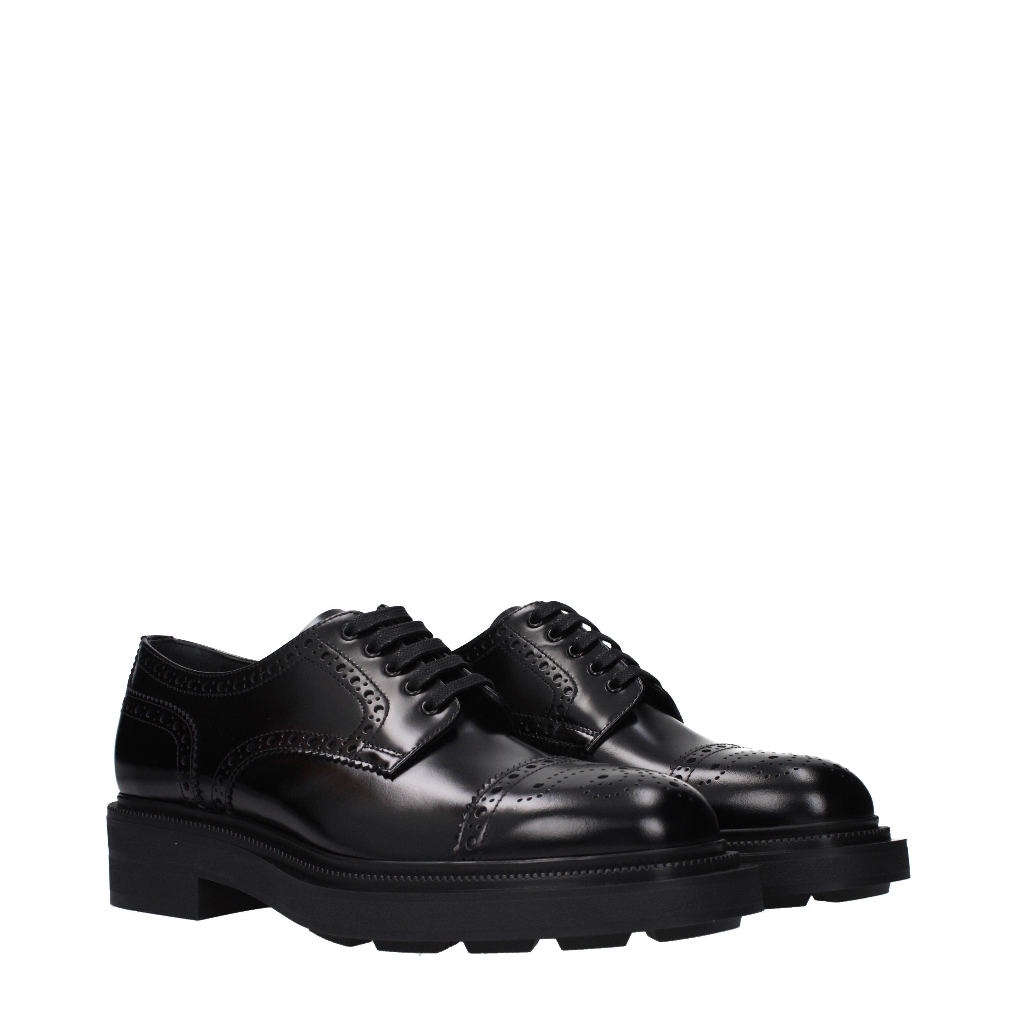 These PRADA derby shoes demonstrate a masterful approach to footwear, entirely MADE IN ITALY. The silhouette is characterized by intricate brogue perforations that wrap around the polished upper, creating a visual rhythm between tradition and modern volume. A substantial rubber sole provides a significant 4.5 cm elevation, ensuring a cushioned and firm stride.