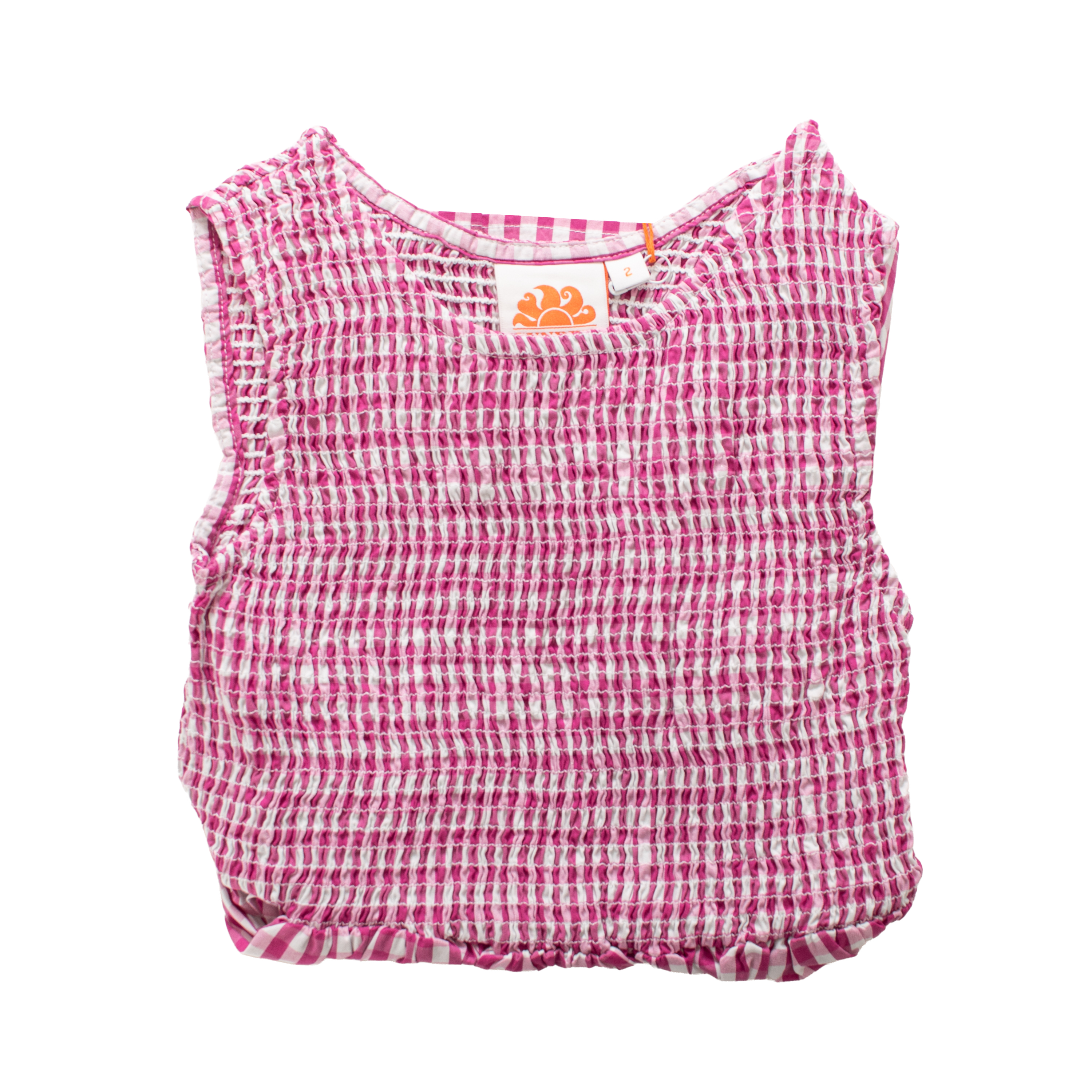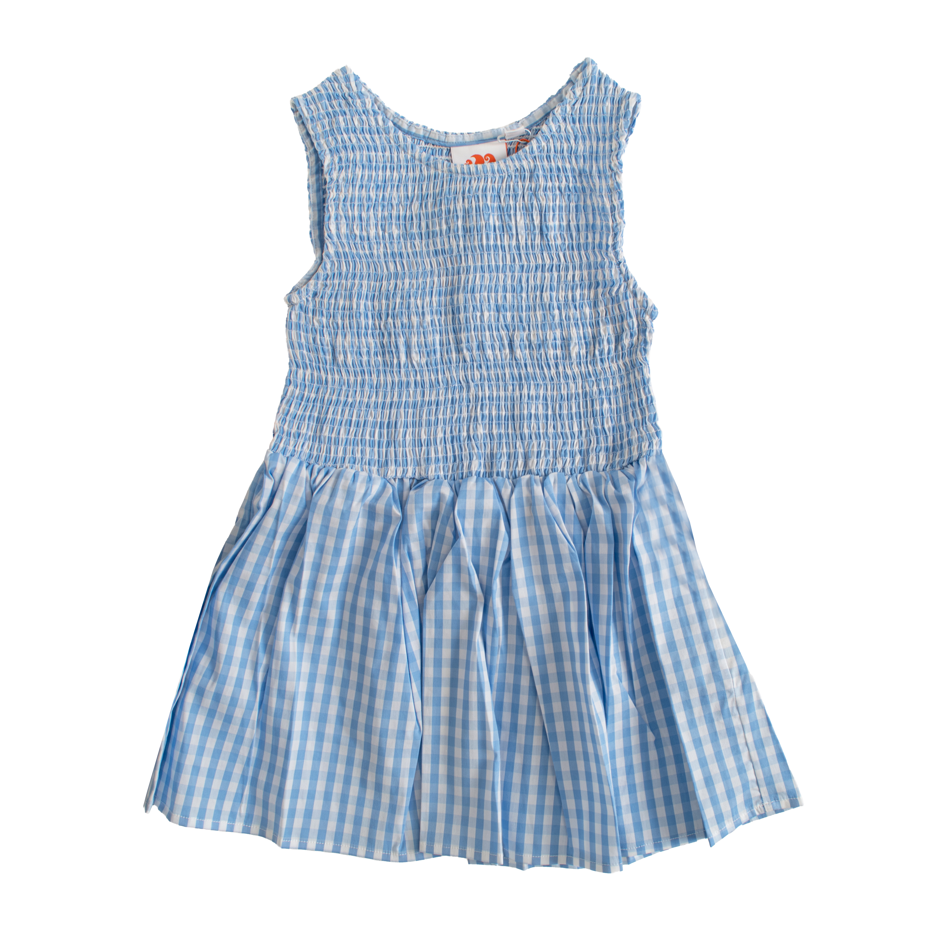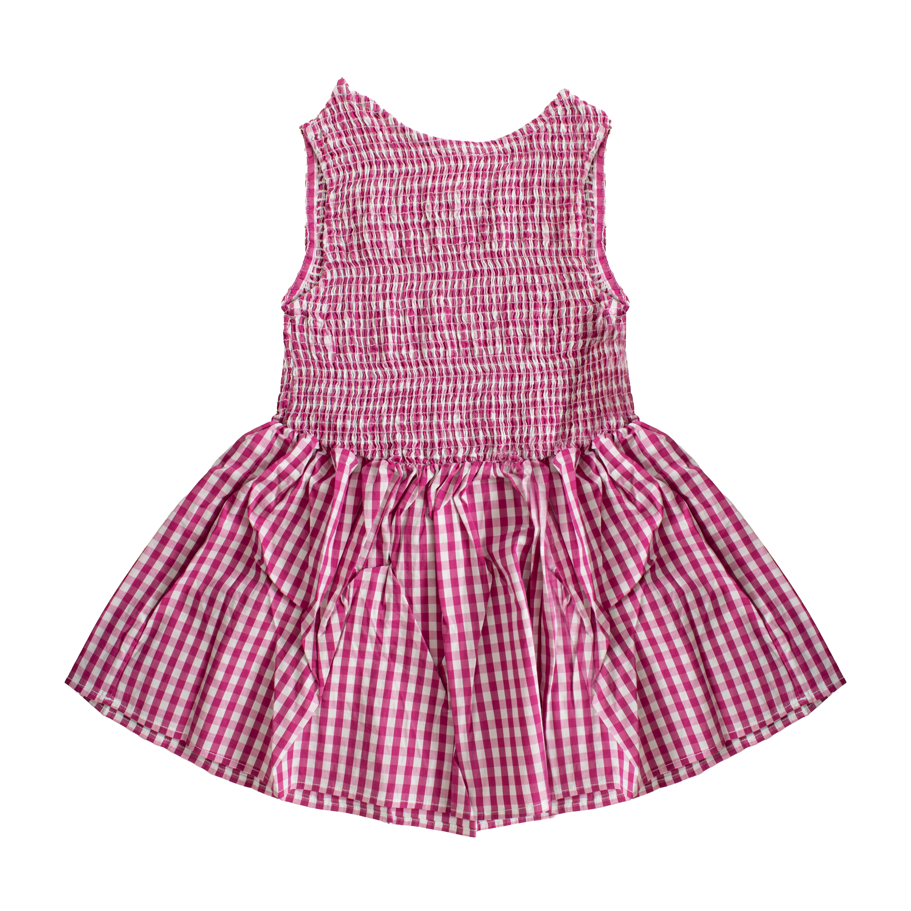 This dress SUNDEK - MINI XENIA-DRESS by SUNDEK presents a sophisticated silhouette characterized by a meticulously gathered bodice and a clean crew neckline. The smocked construction provides a comfortable, form-fitting upper section that transitions seamlessly into a flared skirt, creating a sense of graceful rhythm. Each detail, from the sleeveless cut to the precisely executed gingham pattern, reflects a high standard of garment engineering tailored for the luxury wholesale market.