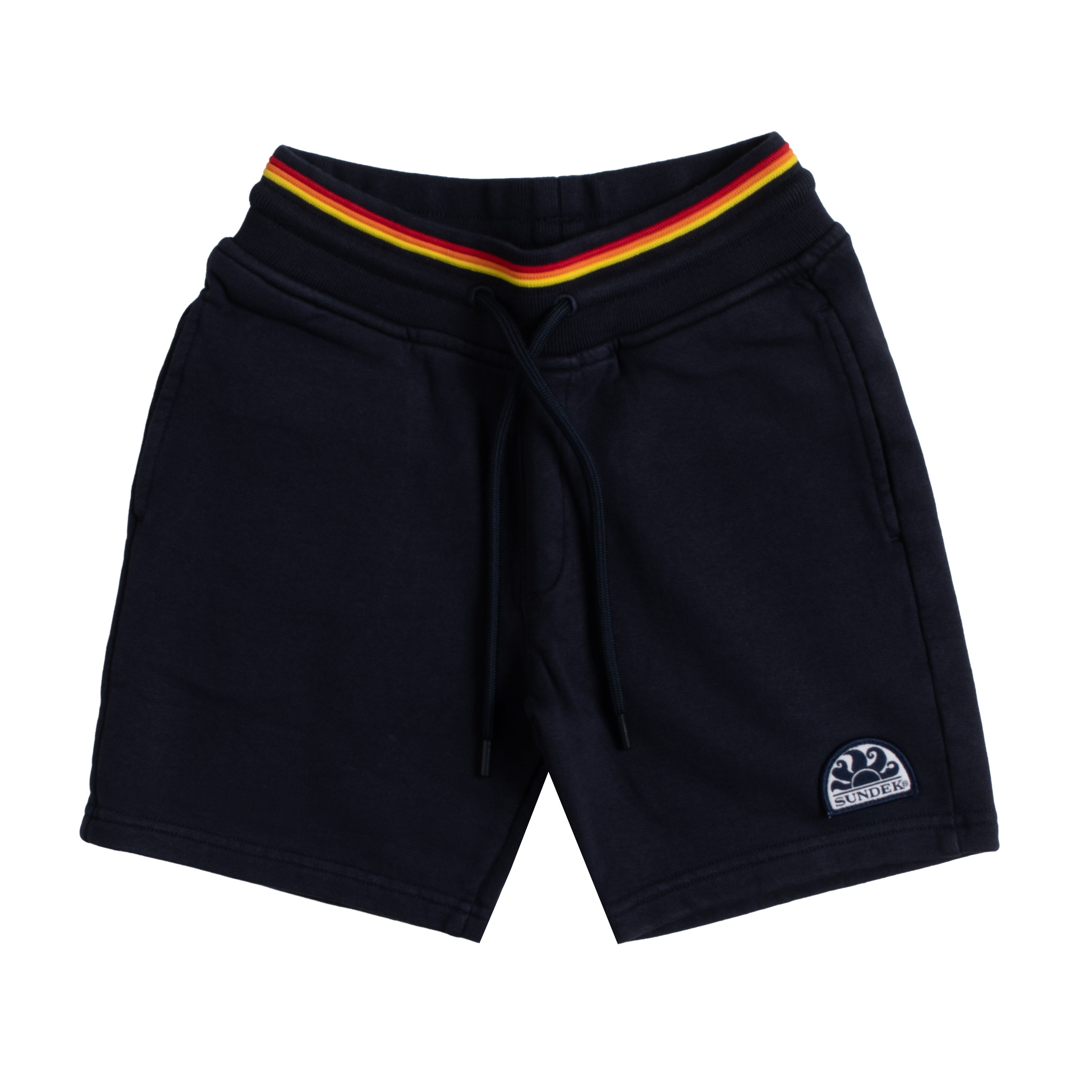 This BERMUDA E SHORTS SUNDEK - MINI HERITAGE RAINB by SUNDEK is a foundational piece designed with an emphasis on total freedom of movement and technical precision. The garment features a flexible ribbed waistband paired with a functional drawstring, ensuring a secure and adaptable fit for any activity. A distinctive multi-colored trim lines the inner waist, providing a subtle graphic element that breaks the solid-colored base.