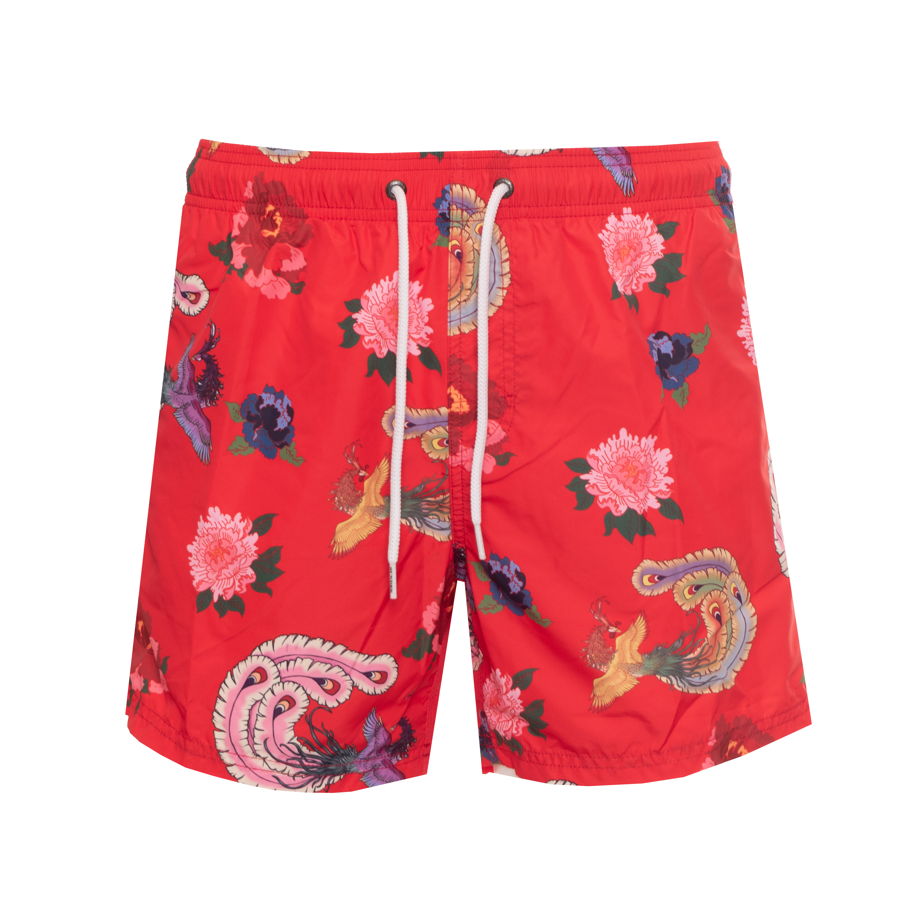 This swimwear SUNDEK - LEVIN-BS-ELASTIC WA by SUNDEK is a meticulously crafted garment designed for superior performance and style. The construction features a robust elasticated waistband paired with a contrasting drawstring, ensuring a secure and adjustable fit for various body types. A sophisticated floral and avian pattern covers the surface, reflecting an artistic approach to technical apparel.