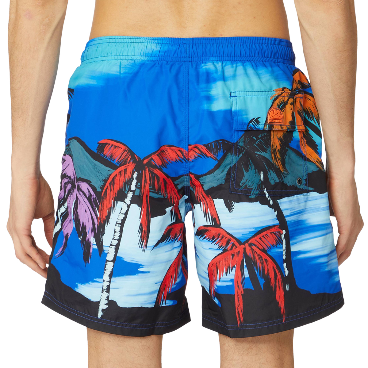 These swim trunks PRINTED SWIM TRUNKS by SUNDEK are a refined choice for those who appreciate high-performance beachwear. The garment features a classic straight-leg silhouette and a comfortable elastic waistband adjustable via a drawstring, ensuring a precise fit. Every detail, from the reinforced eyelets to the side-seam pockets, reflects a commitment to functional excellence and a clean aesthetic.
