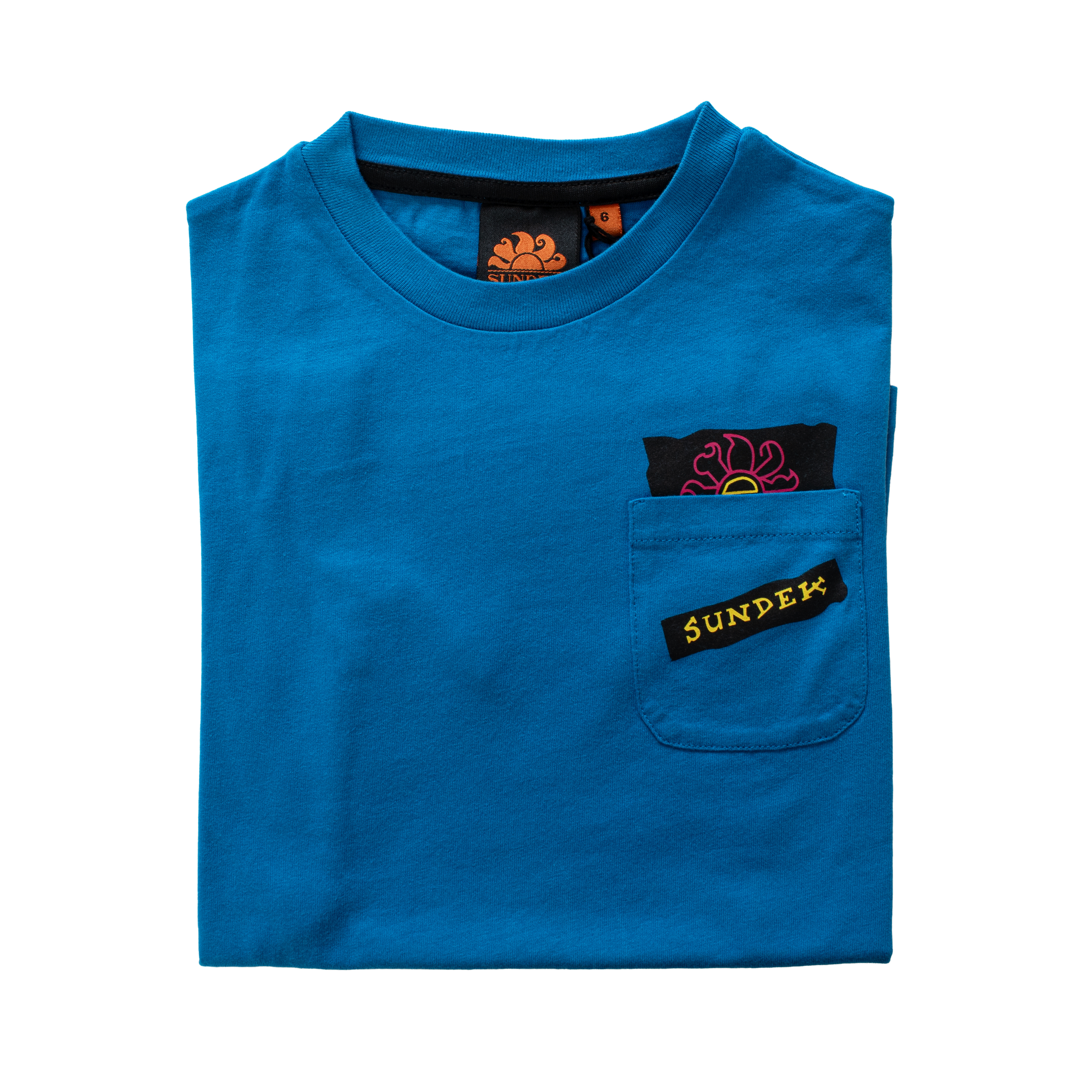 This T-shirt SUNDEK - MINI ARCHIVE SURFER by SUNDEK is a meticulously crafted garment that highlights a relaxed yet structured aesthetic. The design is defined by a prominent chest pocket featuring a vibrant logo embroidery, which introduces a distinctive focal point to the clean front. Its classic crew neck and straight-cut short sleeves ensure a versatile fit that maintains its proportions through repeated wear.