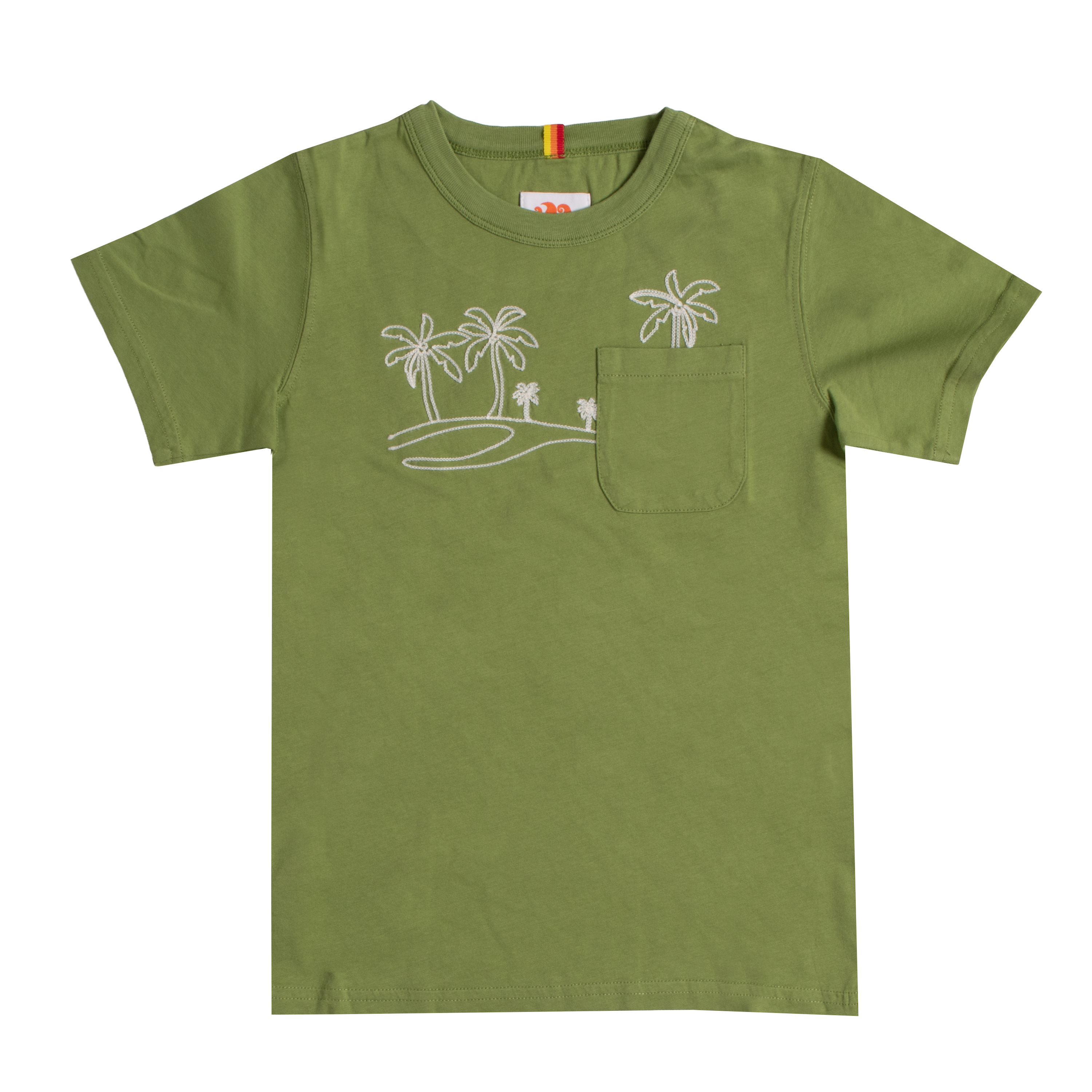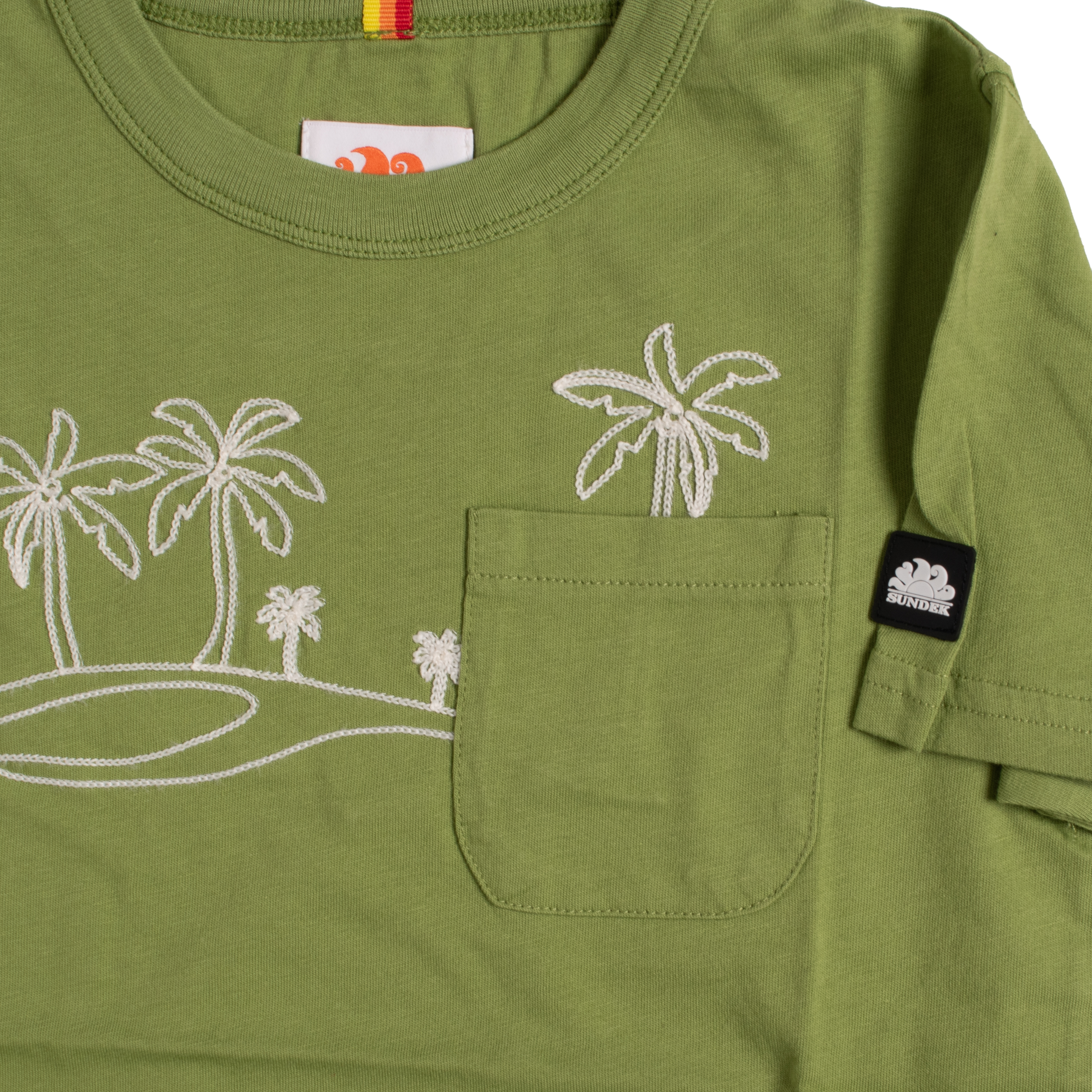 T-SHIRT, FOR KIDS, WITH POCKET, ROUND NECK, SHORT SLEEVES, SOLID COLOUR, WITH LOGO, PRINTED SUNDEK - MINI PALMS AND DUNE