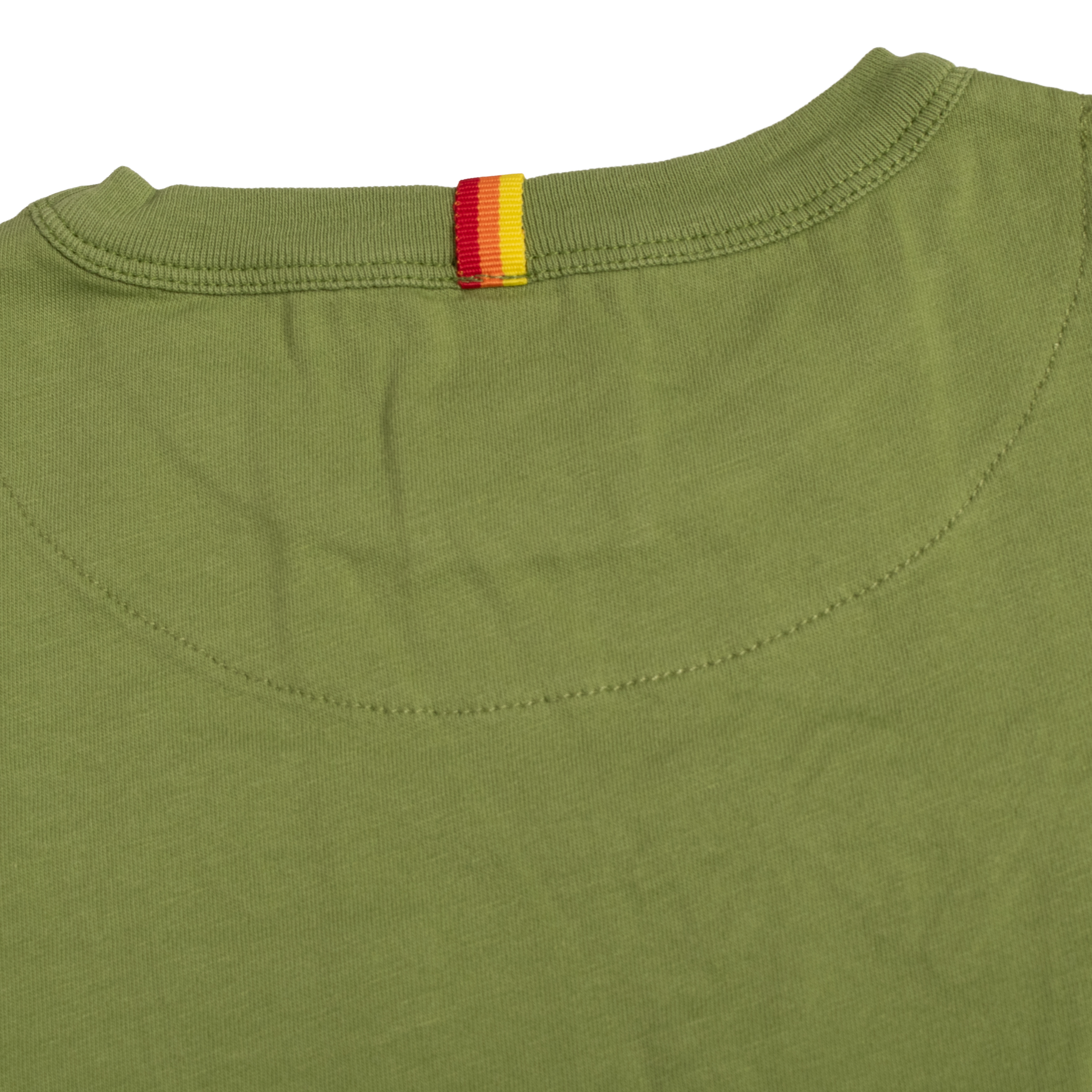 This T SHIRT SUNDEK - MINI PALMS AND DUNE by SUNDEK displays a precision-engineered silhouette that emphasizes comfort and movement. The construction features a classic crew neckline with reinforced internal taping and a functional chest pocket that serves as a canvas for the linear graphic elements. The uncomplicated cut provides a relaxed fit that facilitates effortless layering or standalone wear.
