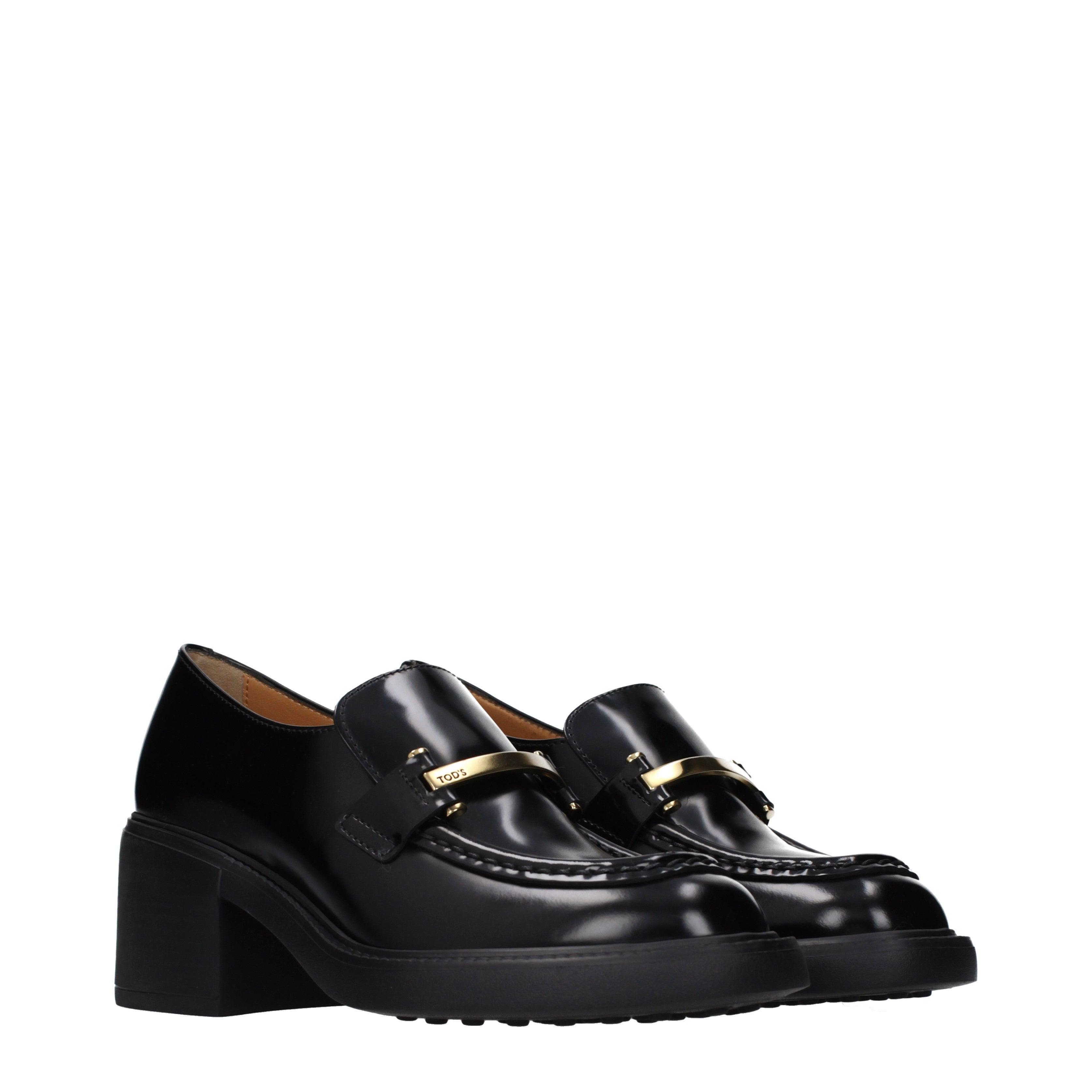 This footwear selection from TOD'S highlights a sophisticated silhouette that bridges the gap between a traditional loafer and a modern pump. The design features a substantial block heel and a rounded toe box, creating a balanced profile that emphasizes structural integrity and a commanding aesthetic.
