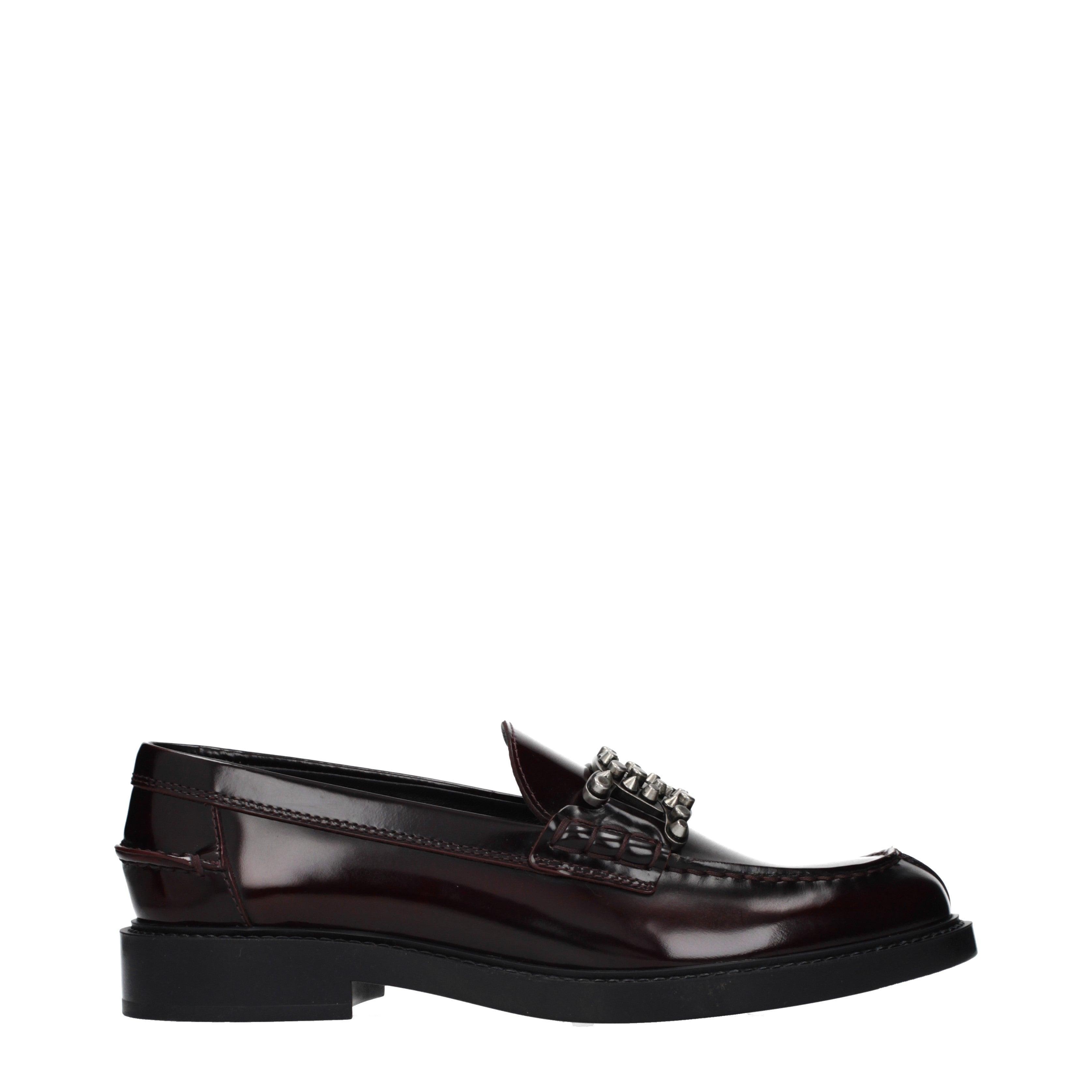 These TOD'S loafers offer a refined take on a classic footwear silhouette, characterized by a high-shine finish and a robust profile. The construction features a distinctive apron toe with visible tonal stitching, complemented by a decorative metallic hardware element across the vamp. A sturdy rubber sole provides a stable foundation, while the low heel ensures a balanced gait for daily business requirements.