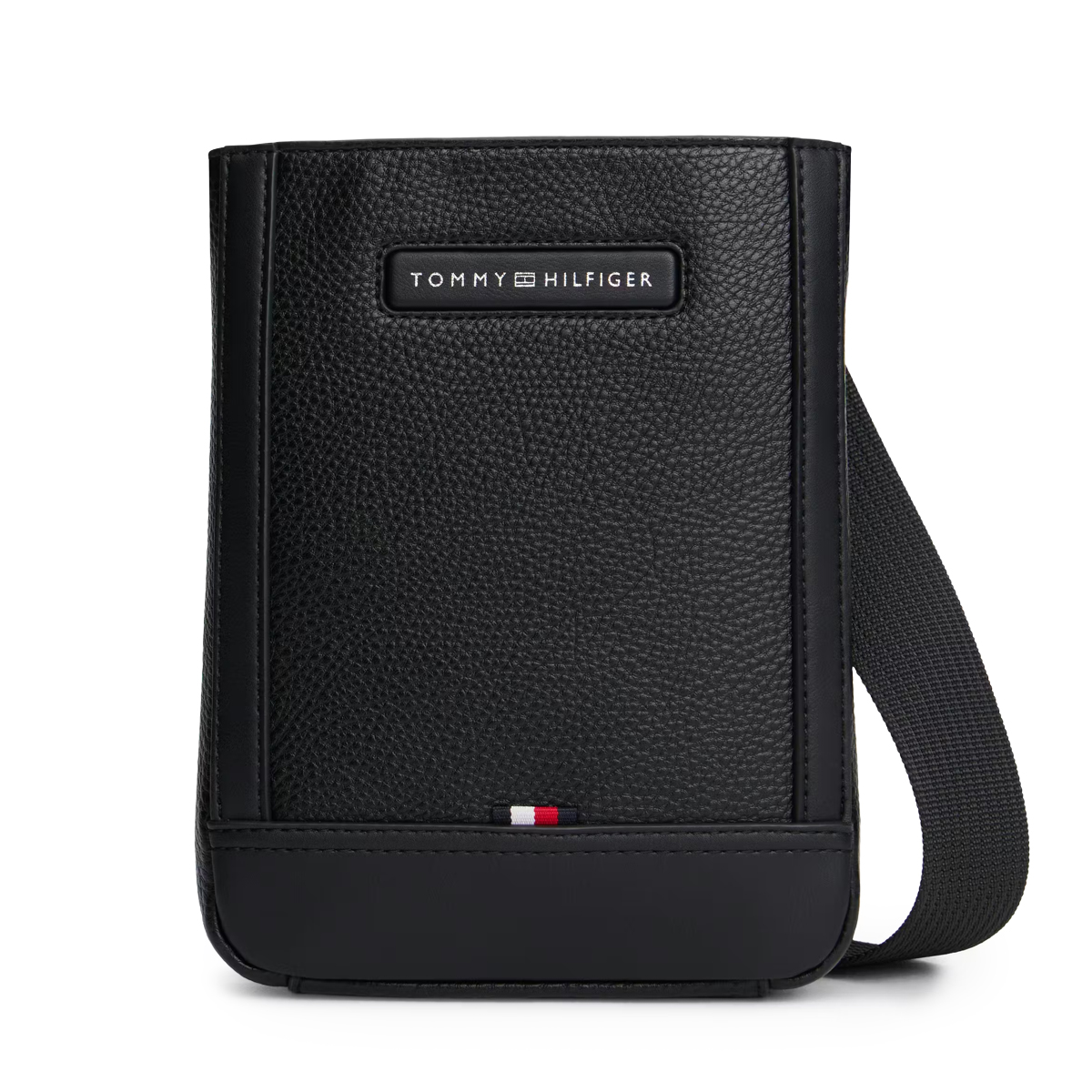 This BORSA A TRACOLLA TH CENTRAL MINI CROS, BDS by TOMMY HILFIGER presents a sophisticated play on textures, featuring a pebbled main body framed by smooth tonal trim. The vertical silhouette is defined by clean edges and a robust construction that maintains its shape over time, reflecting a high standard of accessory engineering.