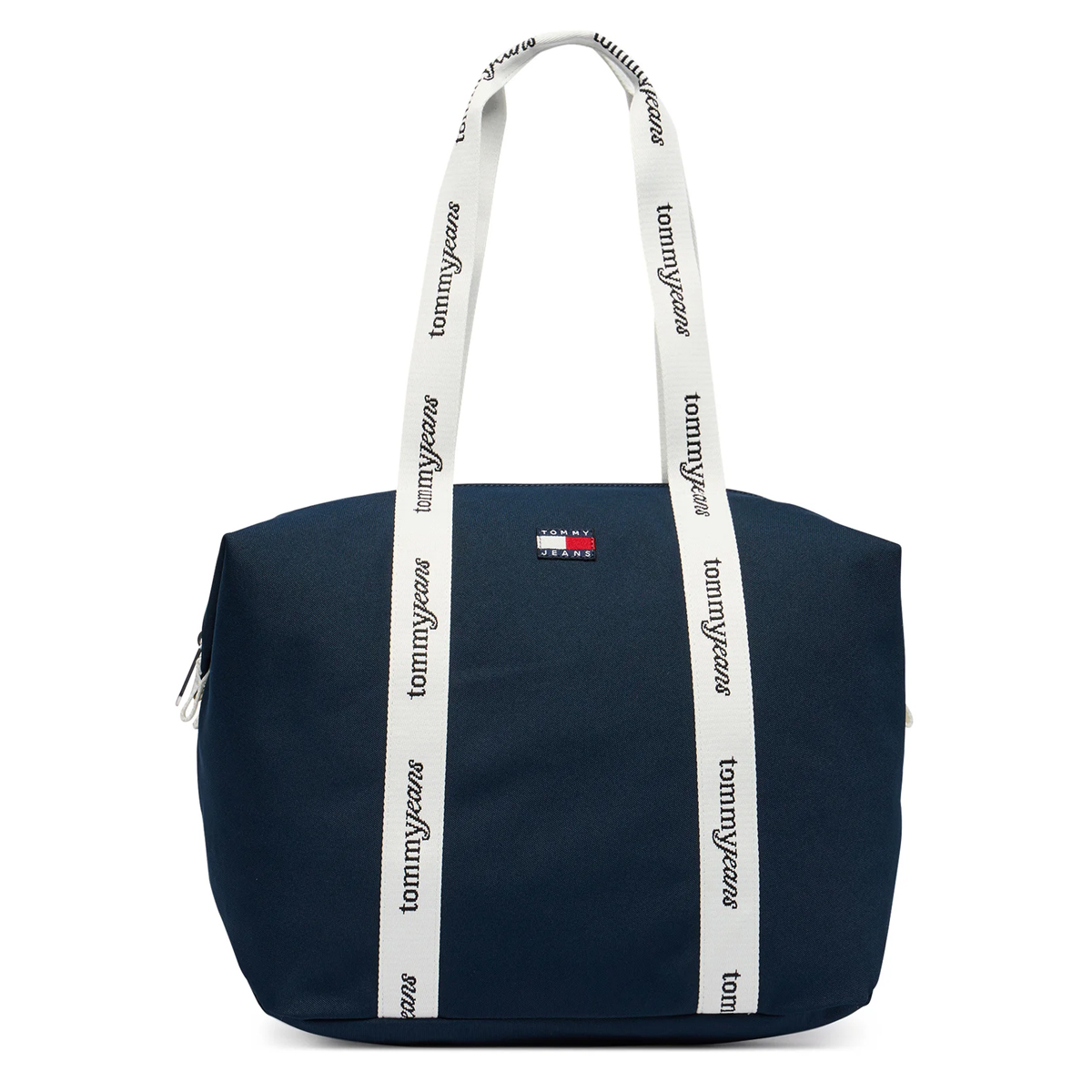 SHOULDER BAG, FOR WOMEN, DOUBLE HANDLE, BI-COLOR, WITH LOGO, ZIP CLOSURE