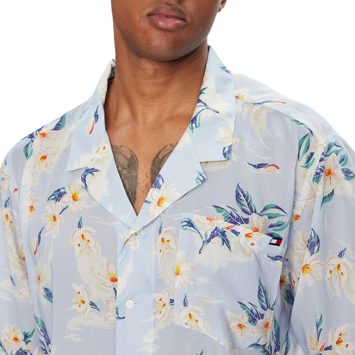 This shirt BOWLING SHIRT PRINT, 0K6 by TOMMY HILFIGER is a masterclass in relaxed tailoring, featuring a boxy silhouette that emphasizes ease of movement. The camp collar design and the straight-cut hem provide a laid-back aesthetic that is supported by the intricate floral pattern covering the entire garment. A functional chest pocket is neatly integrated into the front panel, adorned with the iconic brand insignia that highlights its designer heritage.