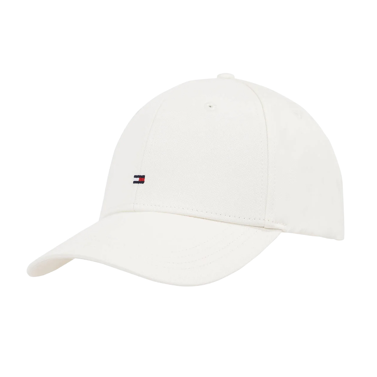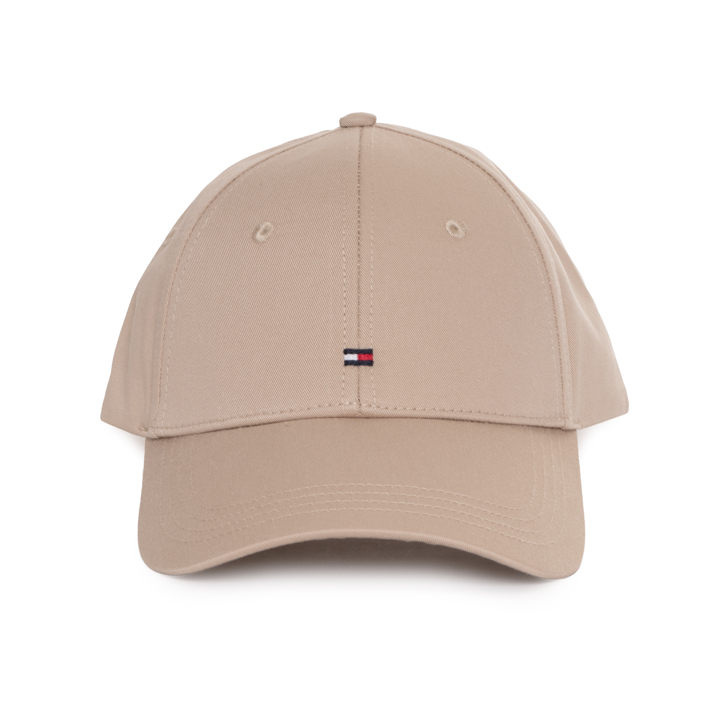 This baseball cap TH FLAG COTTON 6 PAN, C1O by TOMMY HILFIGER is a classic headwear staple featuring a structured six-panel crown for a precise silhouette. The design includes a reinforced curved visor with tonal decorative stitching, providing both shade and a streamlined aesthetic. Ventilation is ensured by tonal embroidered eyelets placed strategically around the top, while a central button anchors the panels together securely. The iconic flag logo is expertly embroidered on the front, serving as a hallmark of premium craftsmanship.
