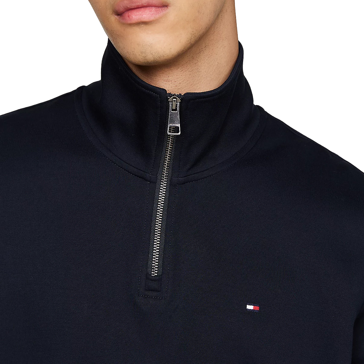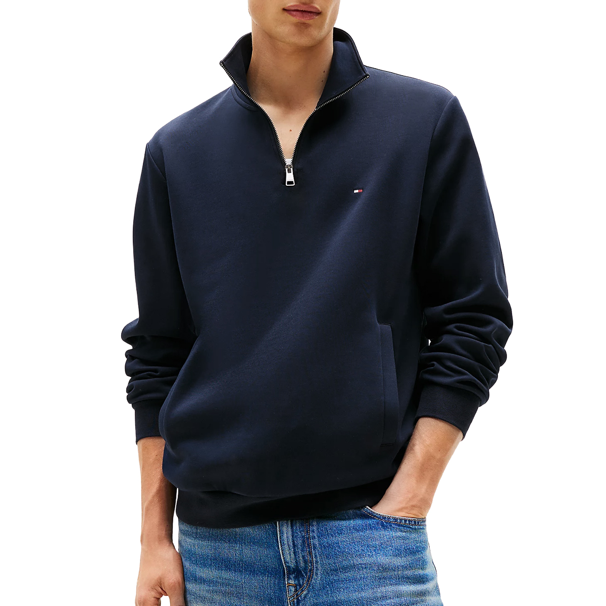 This sweatshirt Essential Intechno 1, DW5 by Tommy Hilfiger focuses on a streamlined aesthetic with its distinctive half-zip collar and minimal detailing. The garment features a smooth exterior finish that highlights its refined construction, complemented by subtle side pockets and a discrete chest logo. Ribbed trimmings at the sleeves and waist provide a secure fit, reinforcing the overall clean look of this versatile piece.