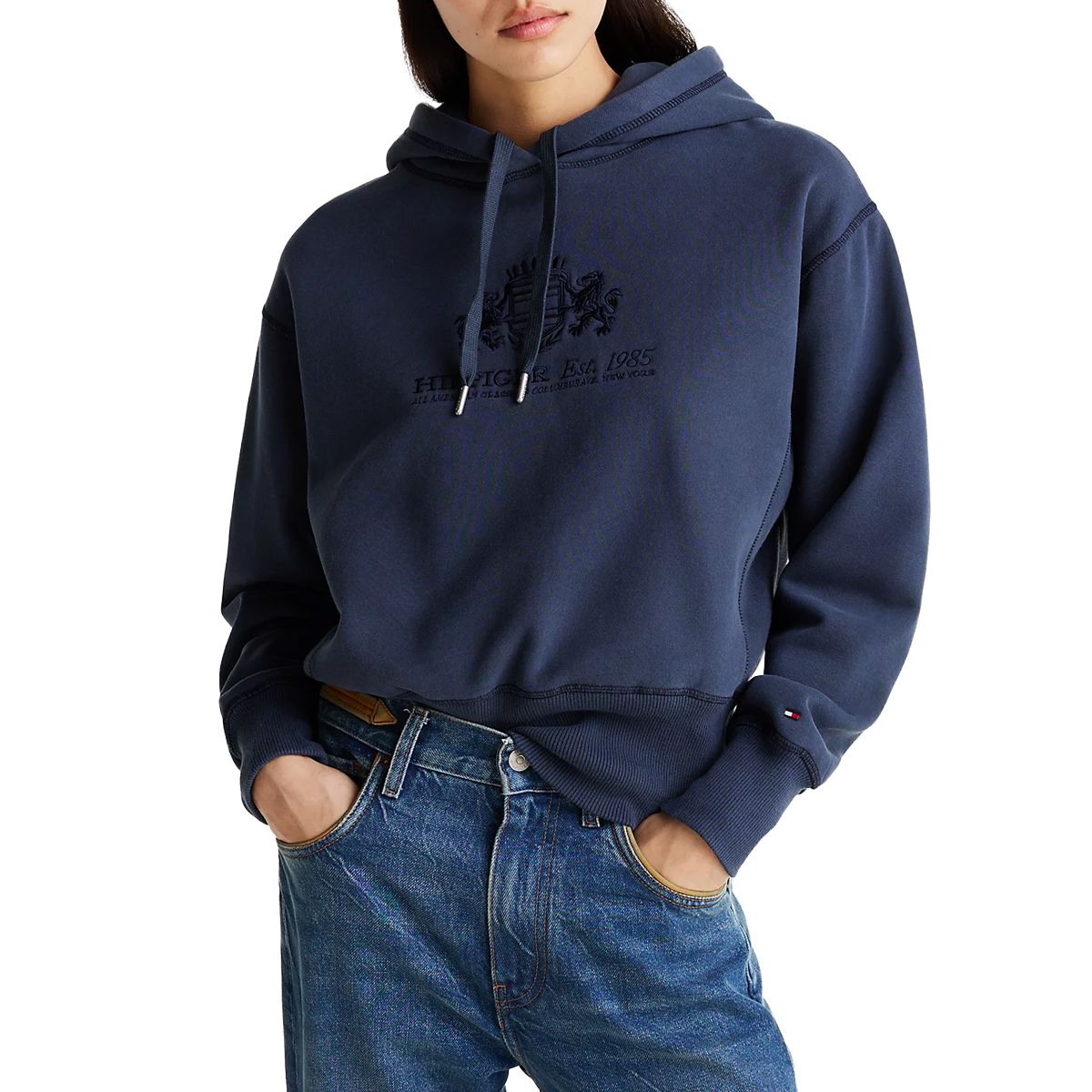SWEATSHIRT, FOR WOMEN, DRAWSTRING HOOD, SOLID COLOUR, FLEECE, WITH LOGO