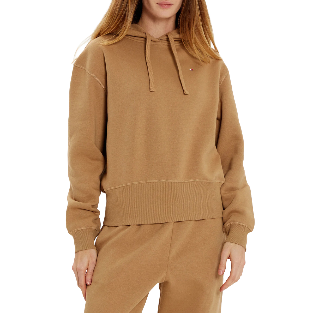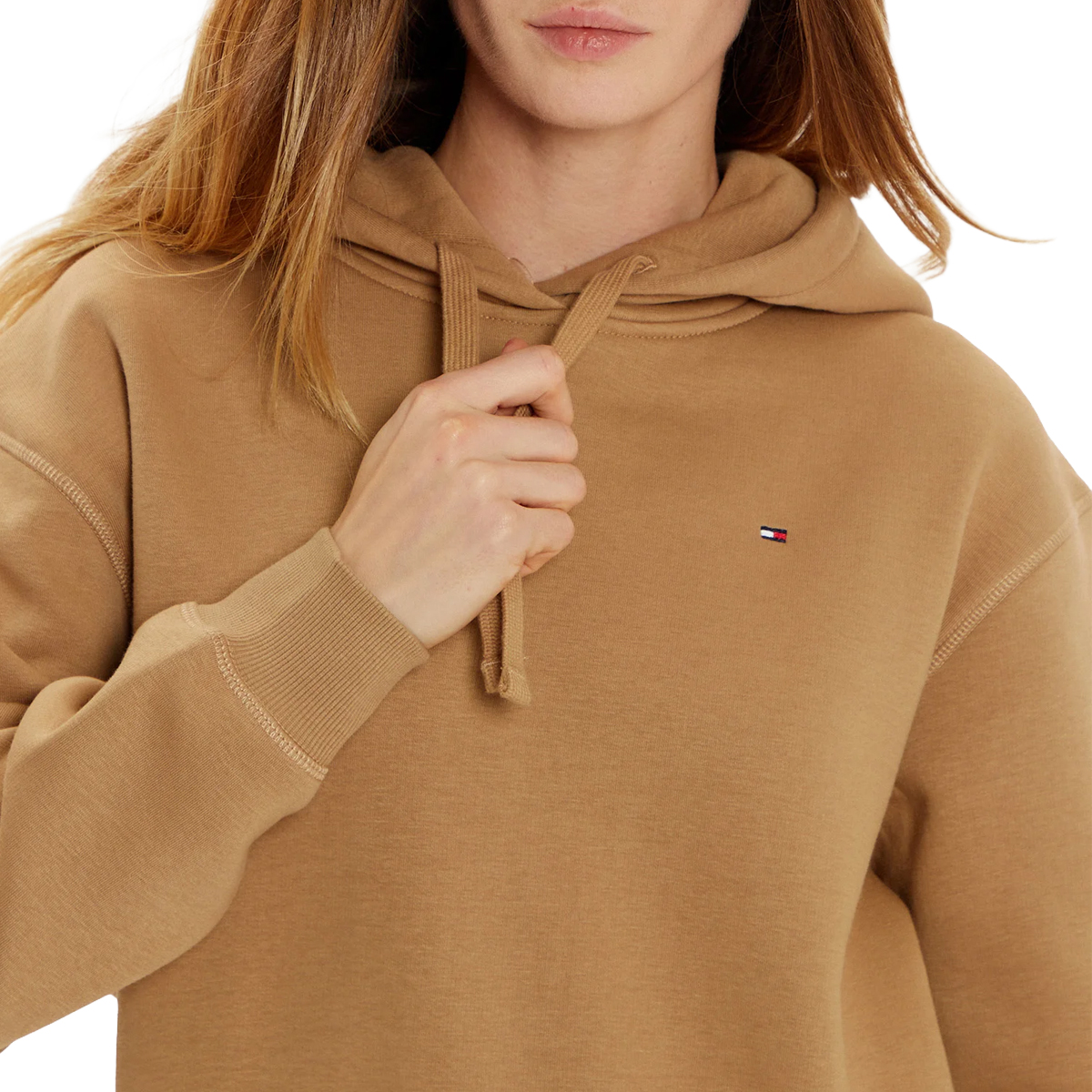 SWEATSHIRT, FOR WOMEN, DRAWSTRING HOOD, SOLID COLOUR, FLEECE, WITH LOGO