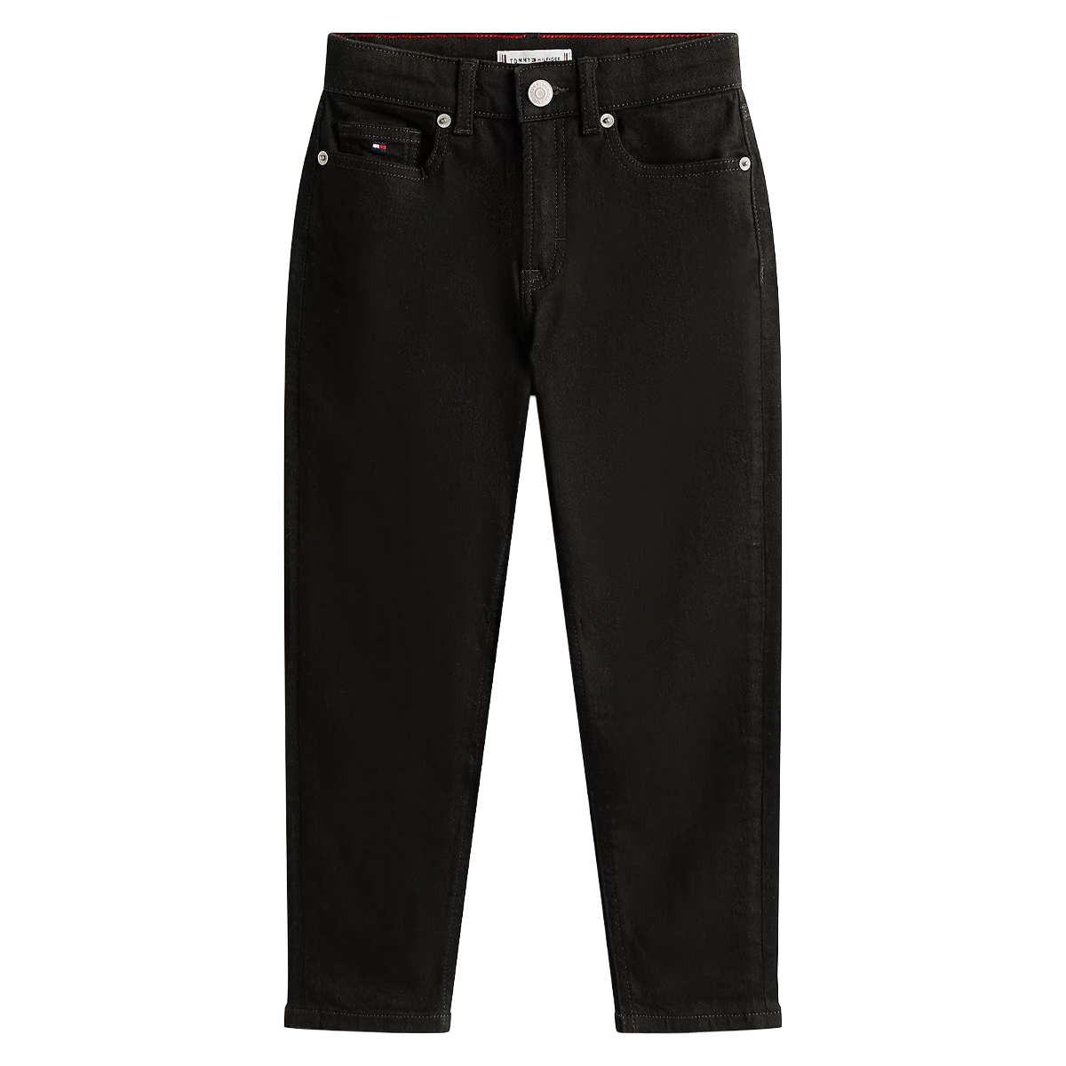 This JEANS MABEL BLACK by TOMMY HILFIGER is a refined staple designed with a focus on tactile comfort and enduring style. The silhouette features a clean, straight leg that terminates in a contemporary length, providing a streamlined appearance. Subtle branding, including the iconic logo flag on the coin pocket, punctuates the design without overwhelming the minimalist aesthetic, while the traditional five-pocket layout offers practical utility.