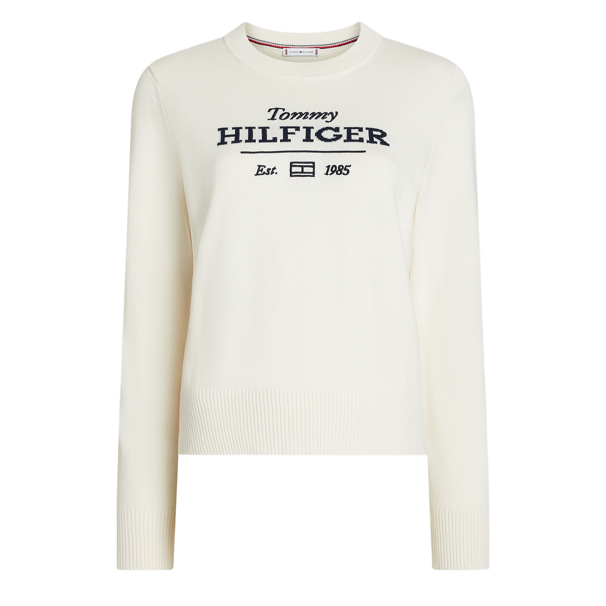 KNITWEAR, FOR WOMEN, ROUND NECK, LONG SLEEVES, BI-COLOR, WITH LOGO