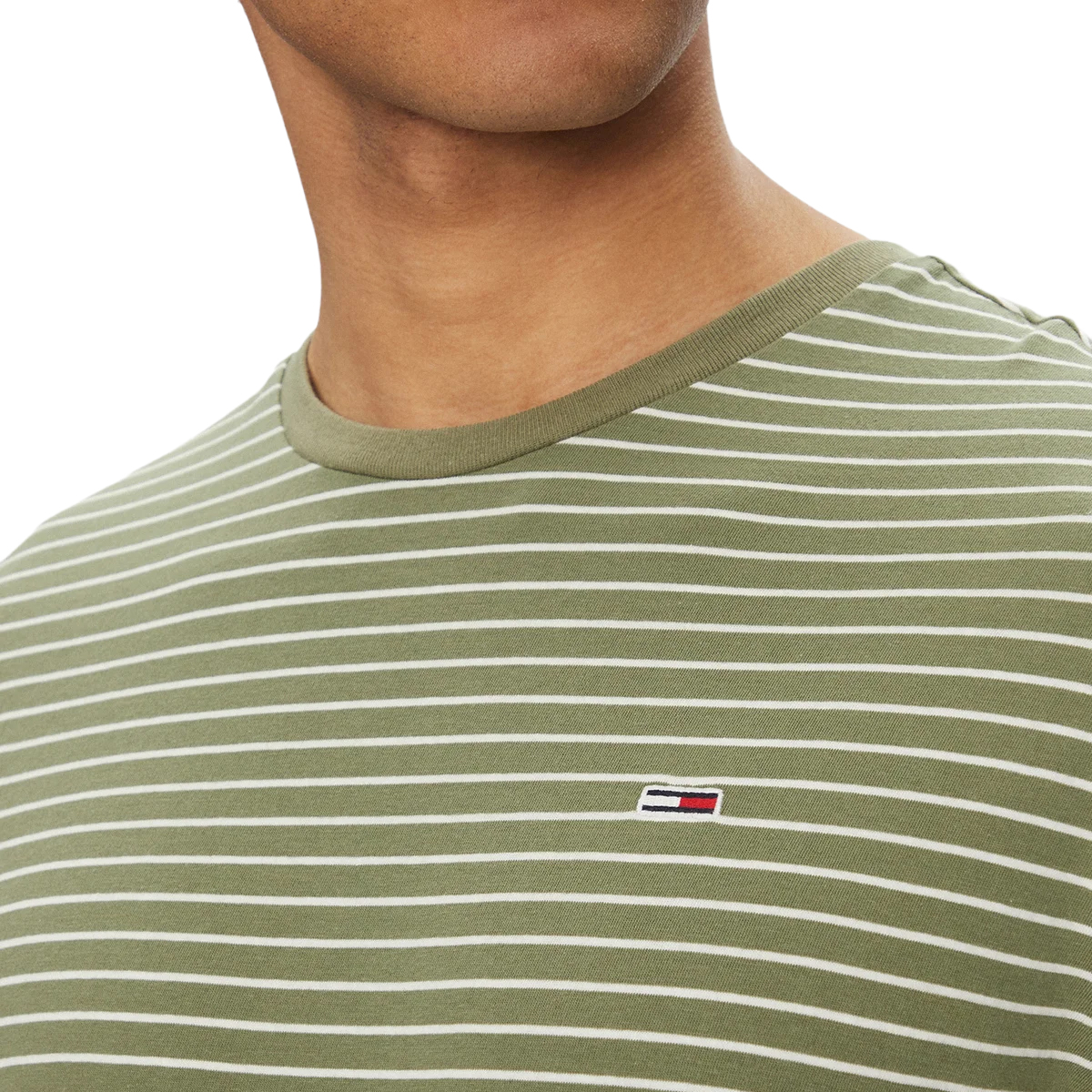 This T SHIRT TJM SLIM STRIPE TEE, 0CH by TOMMY JEANS is a refined staple with a sleek profile. The horizontal stripe pattern creates a structured appearance, complemented by the precision of the slim-fit silhouette and a classic crew neck. A subtle embroidered flag logo sits on the chest, providing a recognizable mark of quality.