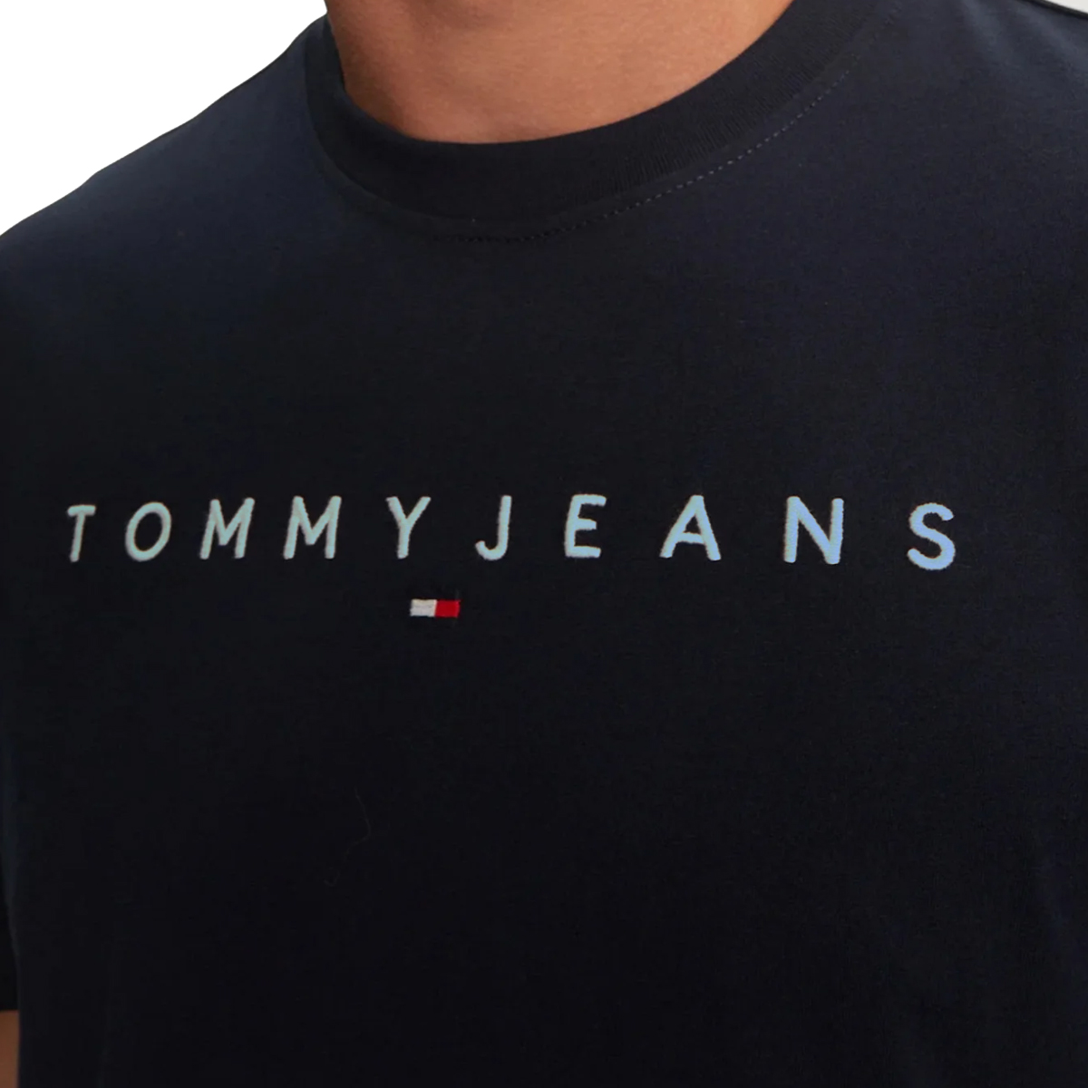 Crafted from 100% regenerative cotton, this Tommy Jeans t-shirt prioritizes a soft, high-quality tactile experience. The jersey fabric offers a consistent weight and a smooth finish across the entire garment. Featuring a classic crew neck and straight-cut short sleeves, the silhouette remains timeless and versatile. A subtle linear logo is positioned centrally on the chest, accompanied by the signature flag embroidery. The regular fit provides ample room for movement while maintaining a sharp, structured appearance. Double-stitched hems at the sleeves and waist reinforce the durable construction of this essential men's piece.