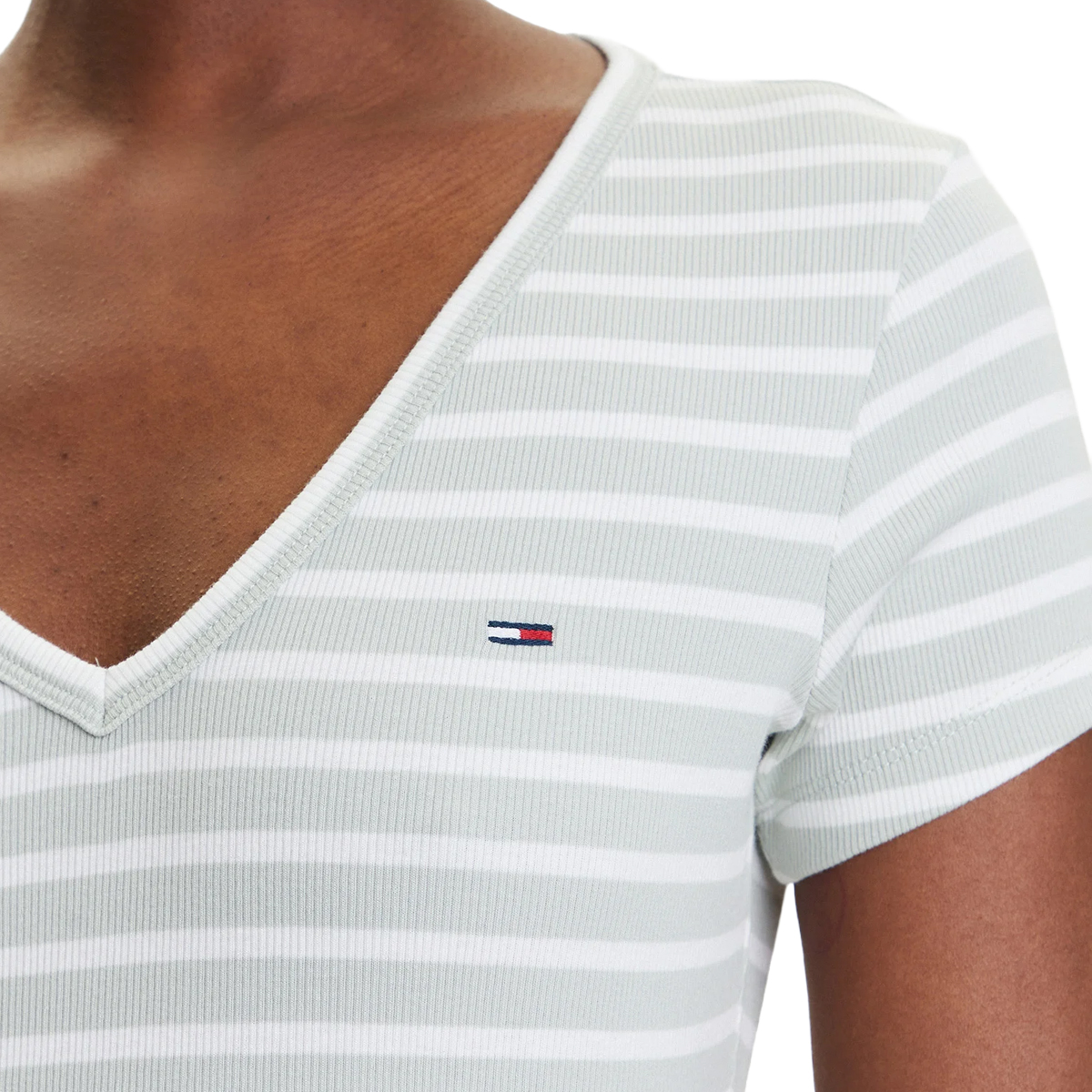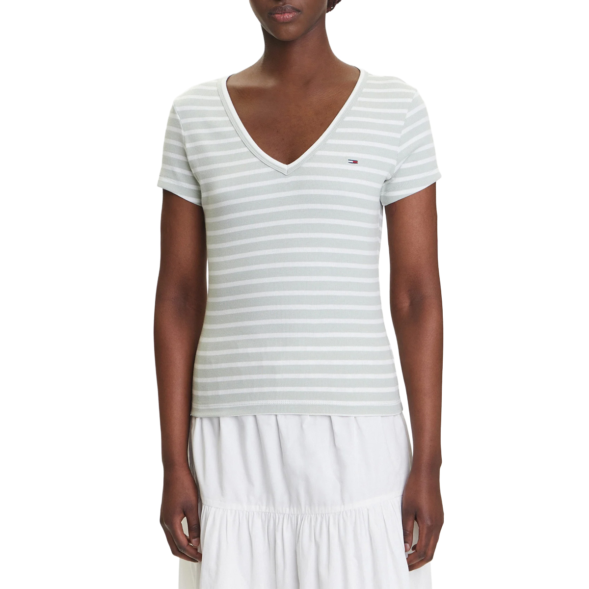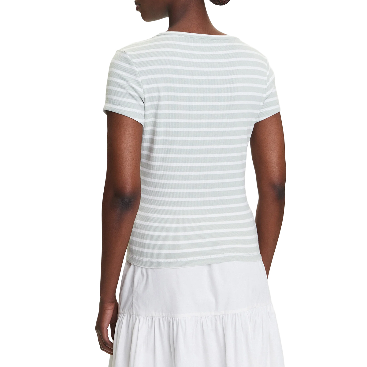 T-SHIRT, FOR WOMEN, V- NECK, SHORT SLEEVES, BI-COLOR, WITH LOGO