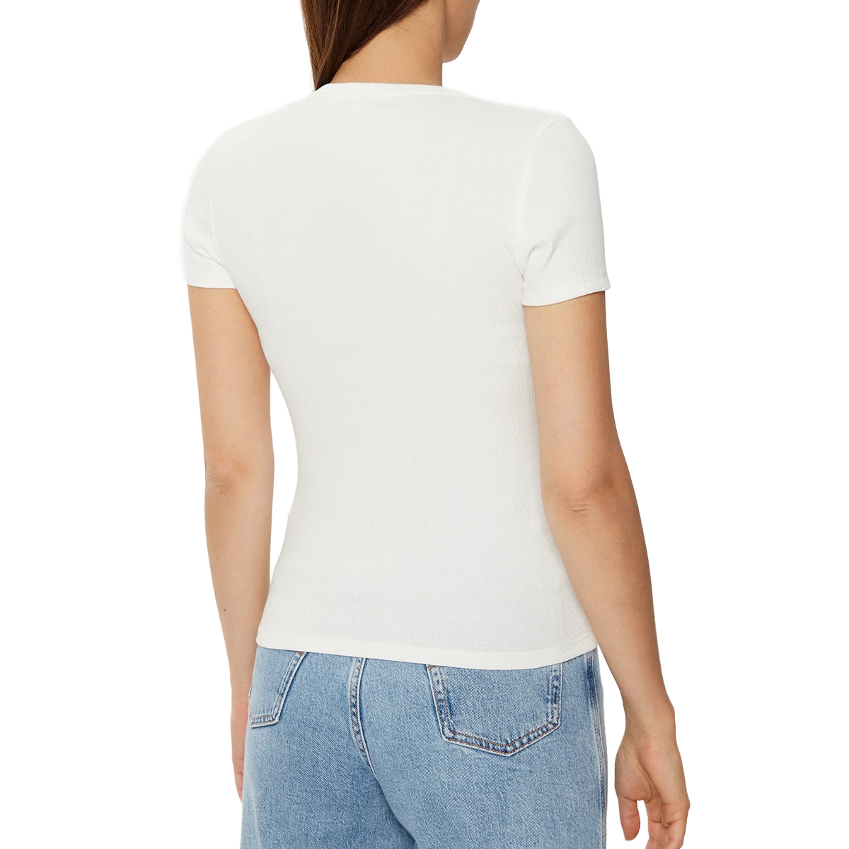 This T SHIRT TJW SLIM BADGE RIB T, YBL by TOMMY JEANS offers a sleek, fitted profile with short sleeves and a classic crew neck. Its finely ribbed texture provides a subtle visual interest, complemented by the distinctive small flag logo at the chest, indicating its brand heritage.Composed of 95% regenerative cotton and 5% elastane, the fabric ensures both softness and exceptional stretch recovery. Regenerative cotton is cultivated using practices that enhance soil health and biodiversity, contributing to a more sustainable textile industry, while the elastane content allows for unrestricted movement and lasting shape.