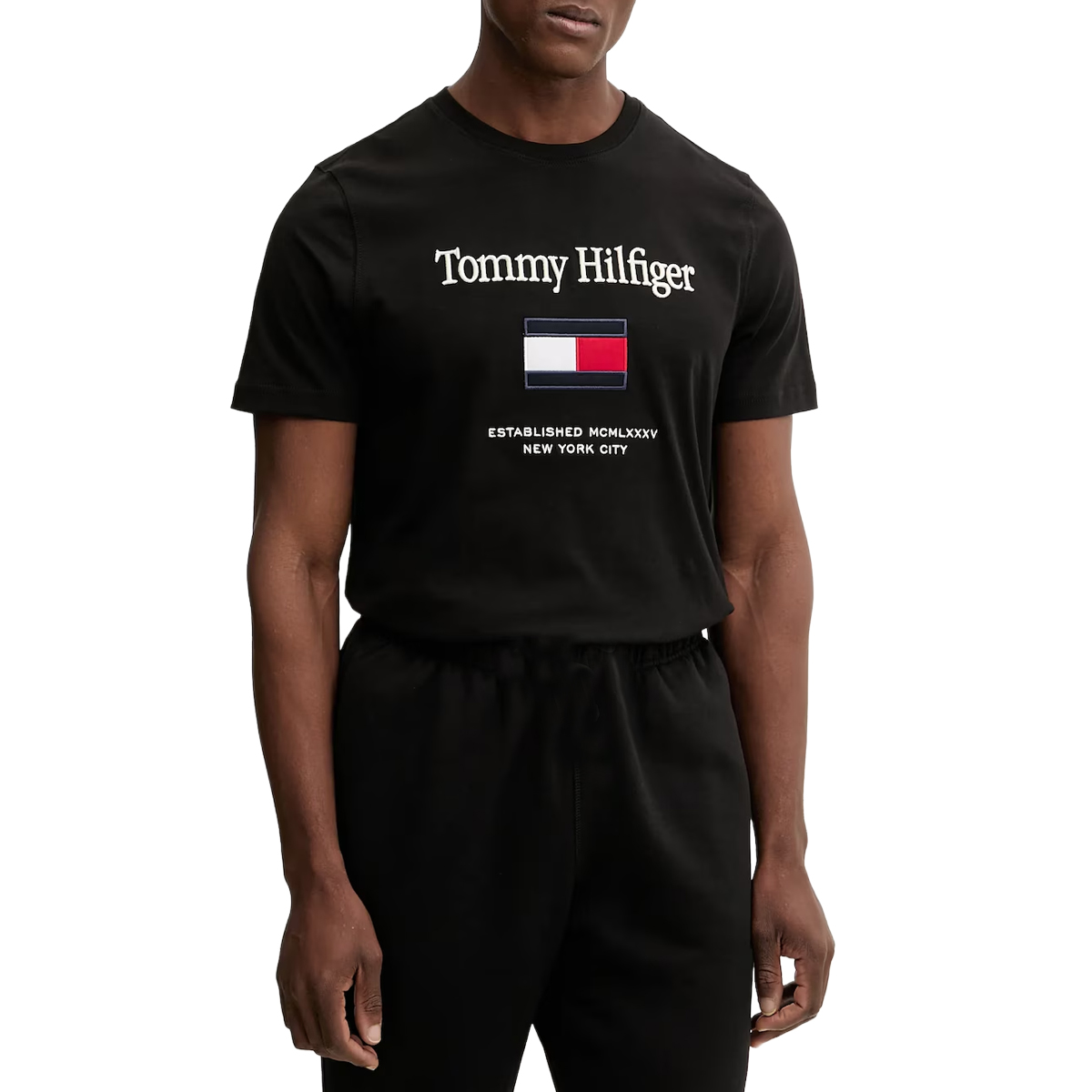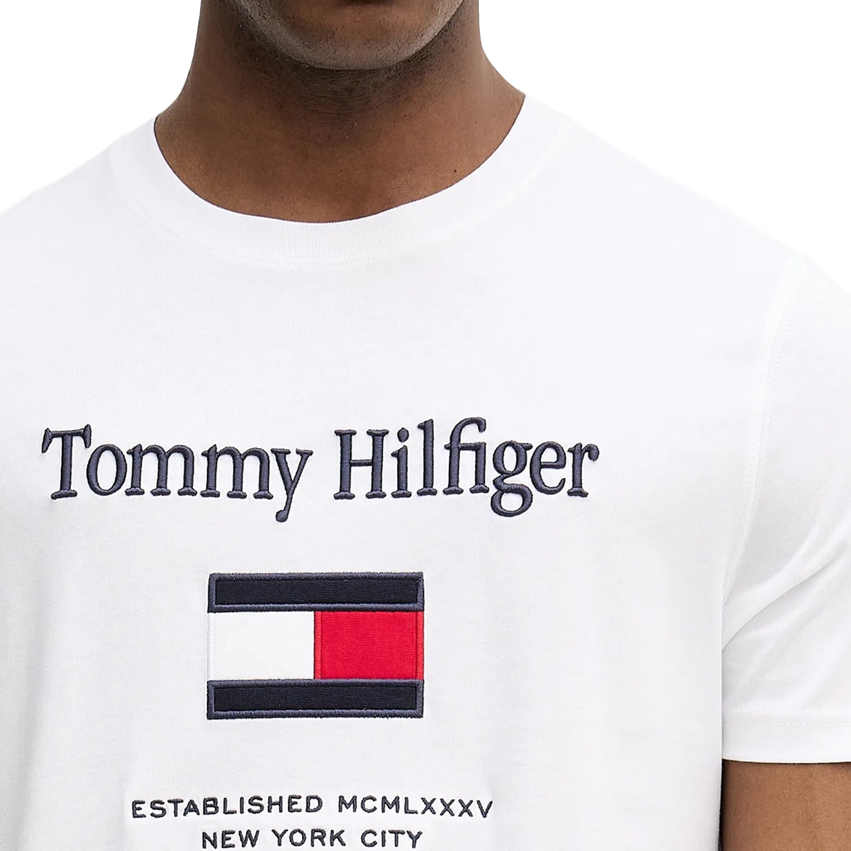 This T SHIRT TOMMY EMBRO FLAG TEE, YBR by TOMMY HILFIGER is a refined staple for any wholesale catalog. It features a prominent chest graphic that includes detailed embroidery of the heritage flag and crisp typography. The regular fit silhouette offers a comfortable, structured look that maintains its shape through daily wear without compromising on professional appearance.