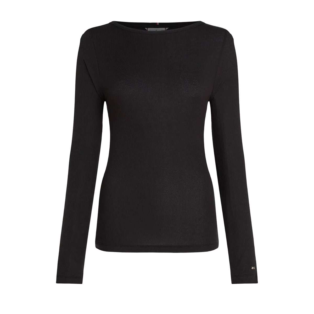 This T-SHIRT SLIM TENCEL OPEN-NK, AEX by TOMMY HILFIGER is a sophisticated basic characterized by its elegant boat neckline and streamlined fit. The long-sleeve construction provides a sleek profile, emphasizing a minimalist aesthetic that appeals to diverse retail environments. Its slim-fit silhouette ensures a contemporary look while maintaining a professional standard of dress for any inventory.