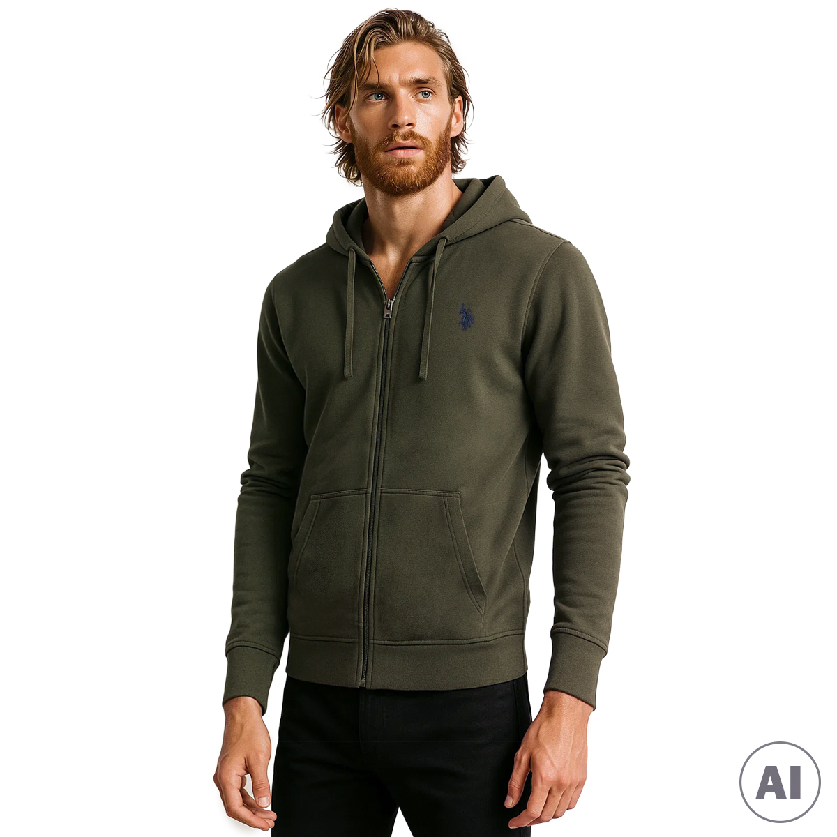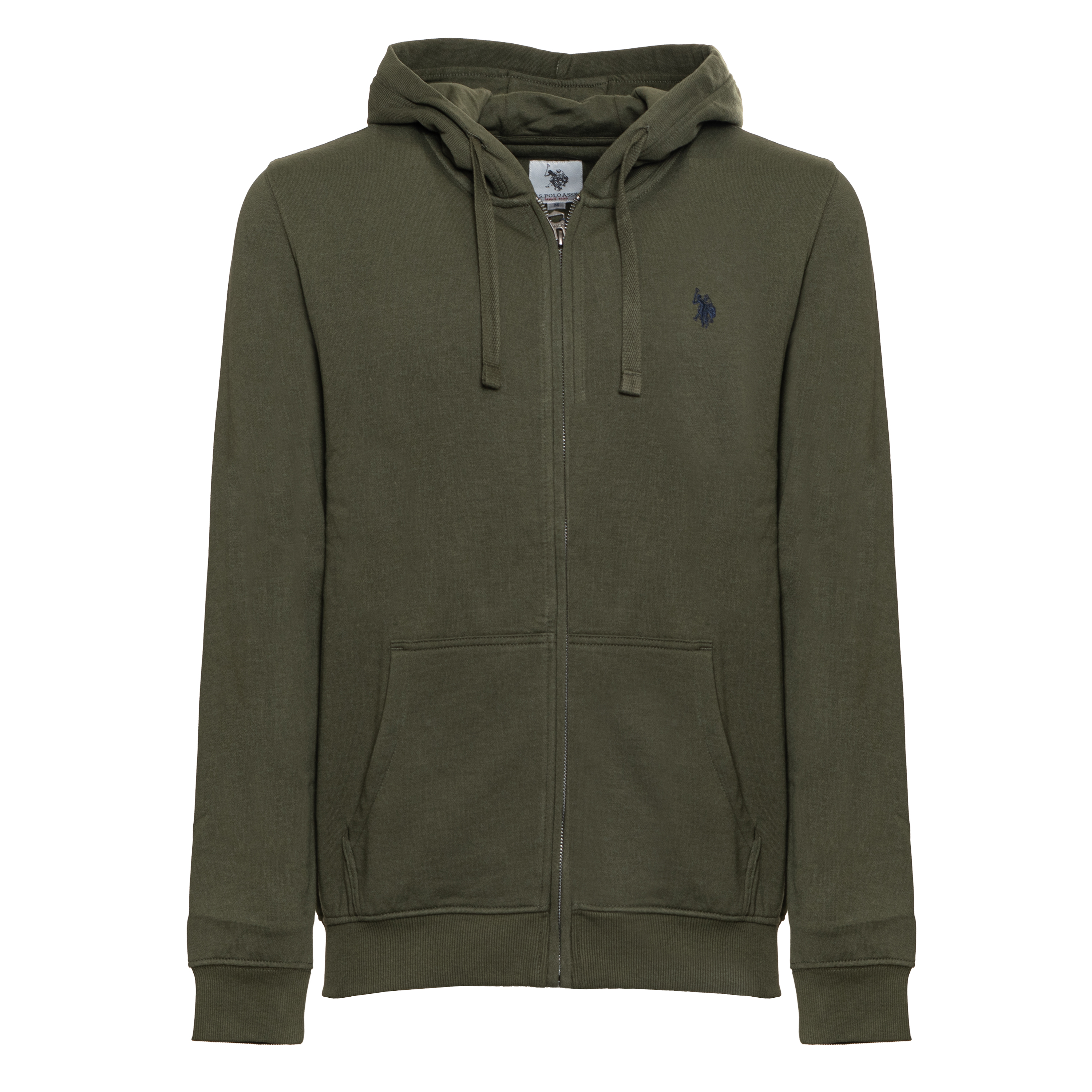 SWEATSHIRT, FOR MEN, DRAWSTRING HOOD, LONG SLEEVES, SOLID COLOUR, FLEECE, WITH LOGO, ZIP CLOSURE