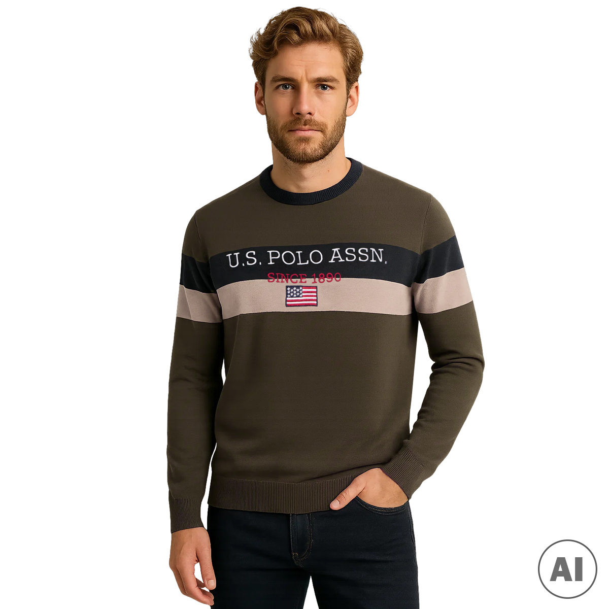 KNITWEAR, FOR MEN, ROUND NECK, LONG SLEEVES, MULTICOLOR, WITH LOGO