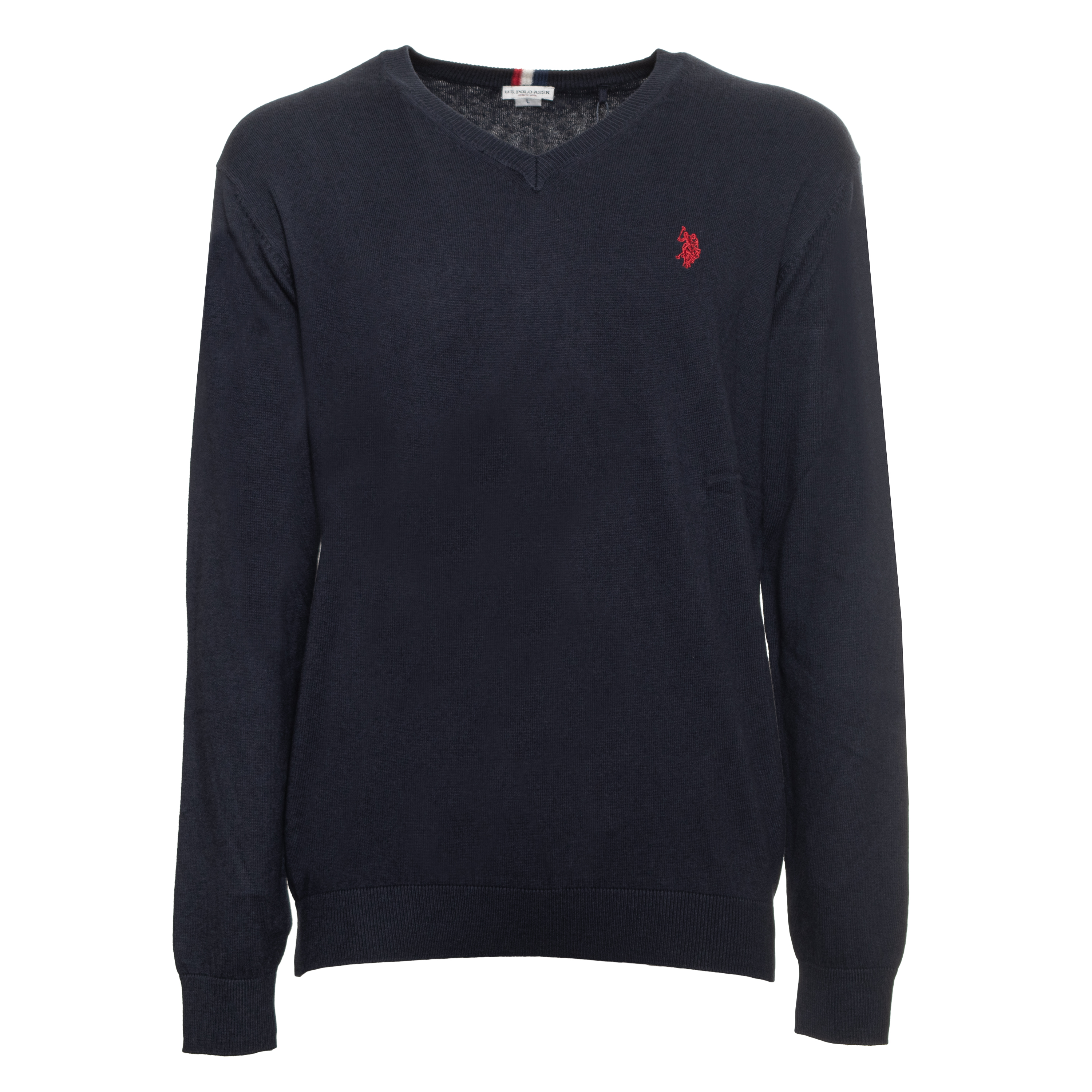 KNITWEAR, FOR MEN, V-NECK, LONG SLEEVES, SOLID COLOUR, WITH LOGO