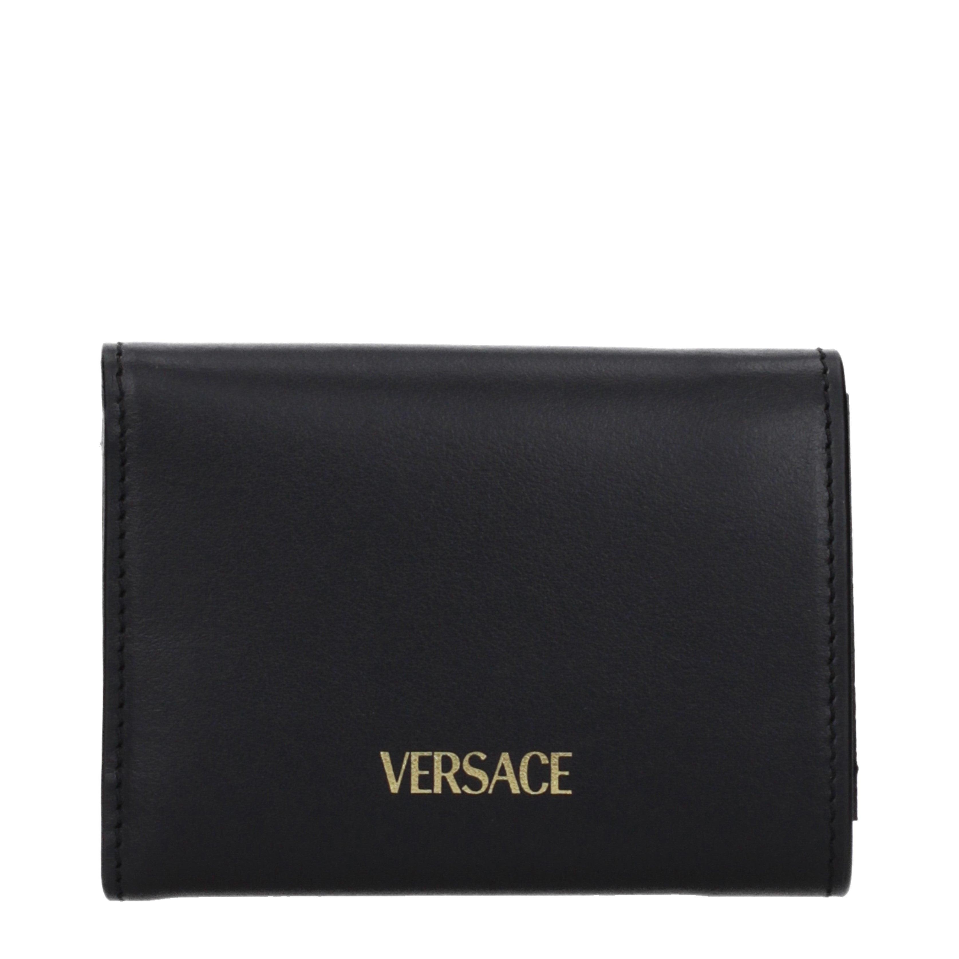 Crafted by VERSACE, this wallet showcases a streamlined silhouette characterized by its smooth finish and precise edge stitching. The front flap is punctuated by a signature Medusa emblem, serving as a focal point of understated luxury. Its compact dimensions house a structured interior with three compartments and six dedicated card slots.