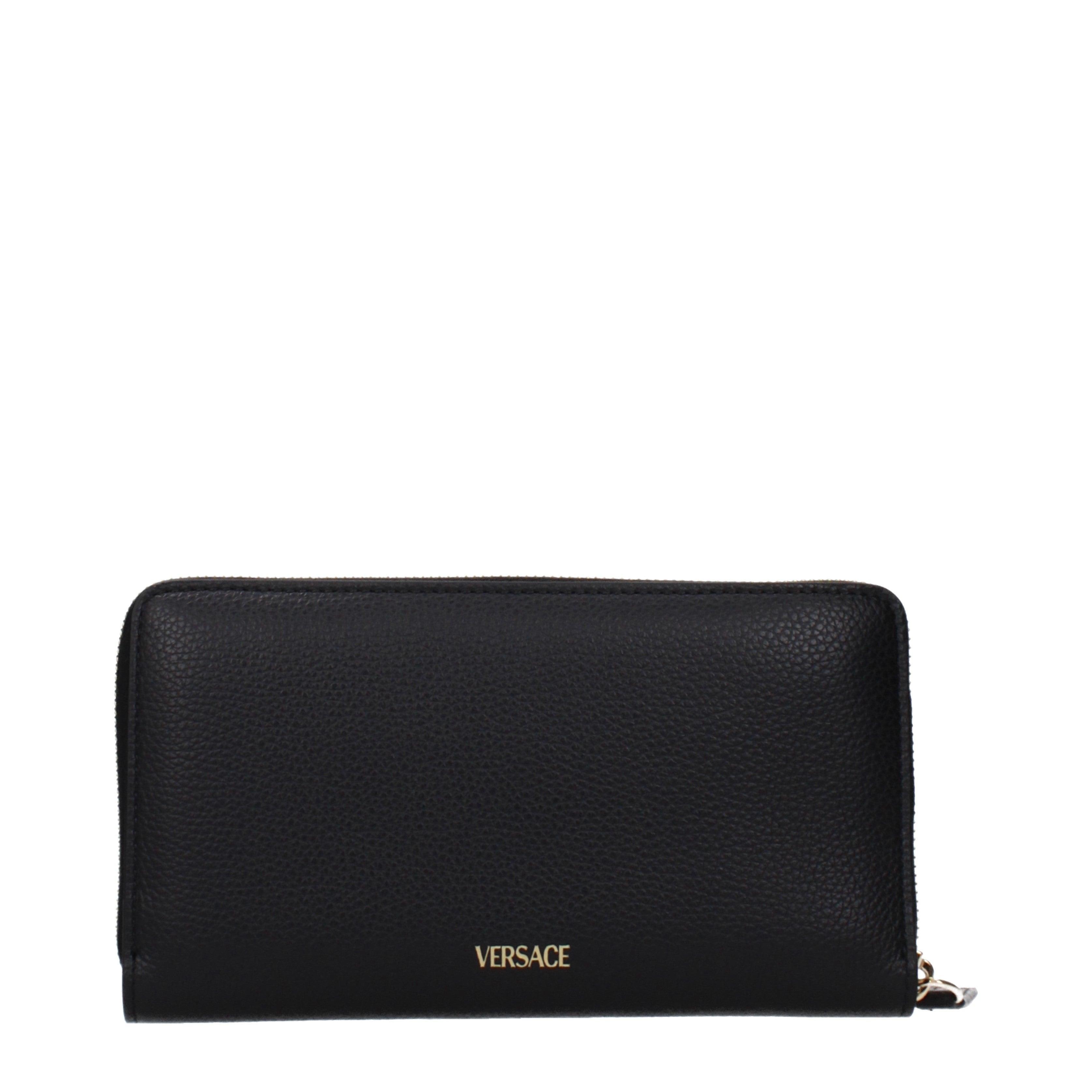 Crafted with precision in ITALY, this VERSACE wallet is a sophisticated addition to any retail selection. The exterior is fashioned from high-quality leather with a pronounced pebbled texture, ensuring both a luxurious grip and exceptional resilience. A sturdy zip-around closure secures an interior thoughtfully organized with twelve card slots and four distinct compartments for maximum utility.