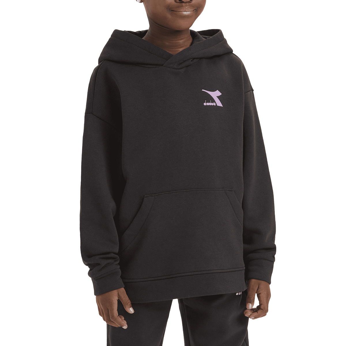SUDADERA, NIÑA, BOLSILLO CANGURO, CON CAPUCHA, MANGA LARGA, SOLO COLOR, AFELPADO, LOGOTIPO IMPRESO