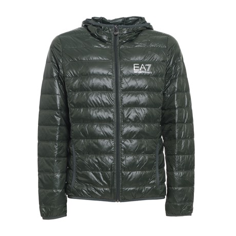 CHAQUETA ACOLCHADA, HOMBRE, BOLSILLOS, CON CAPUCHA, MANGA LARGA, SOLO COLOR, CON LOGO
