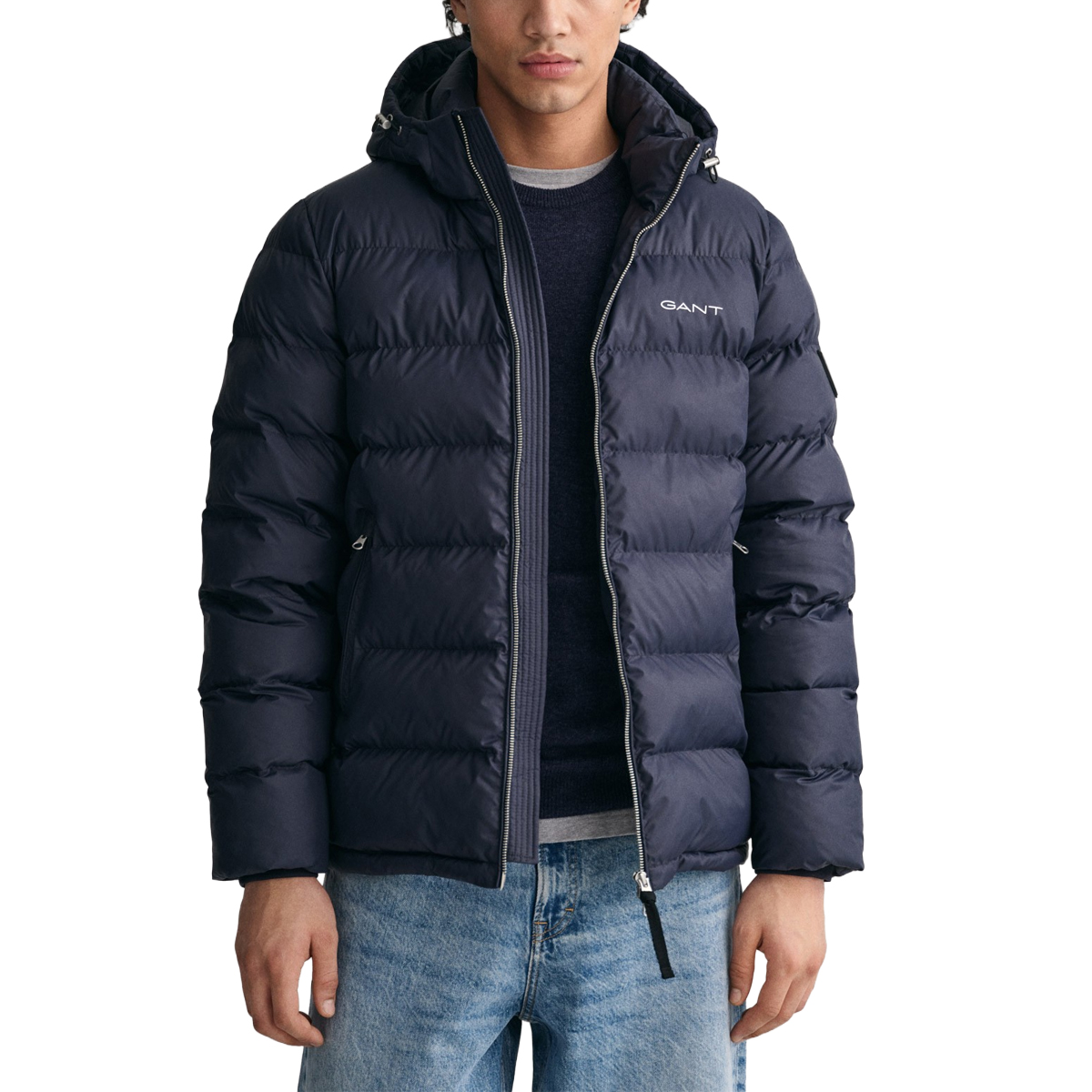 CHAQUETA DE PLUMAS, HOMBRE, BOLSILLOS, CON TAPA, MANGA LARGA, SOLO COLOR, CON LOGO, CIERRE CON ZIP