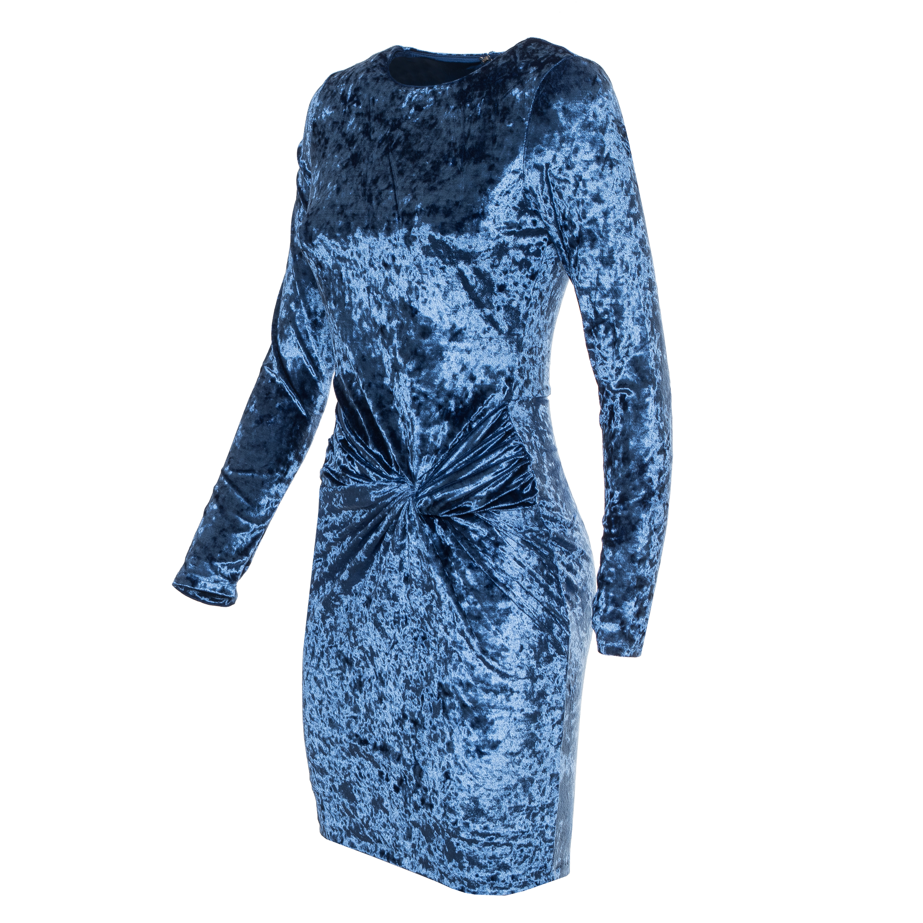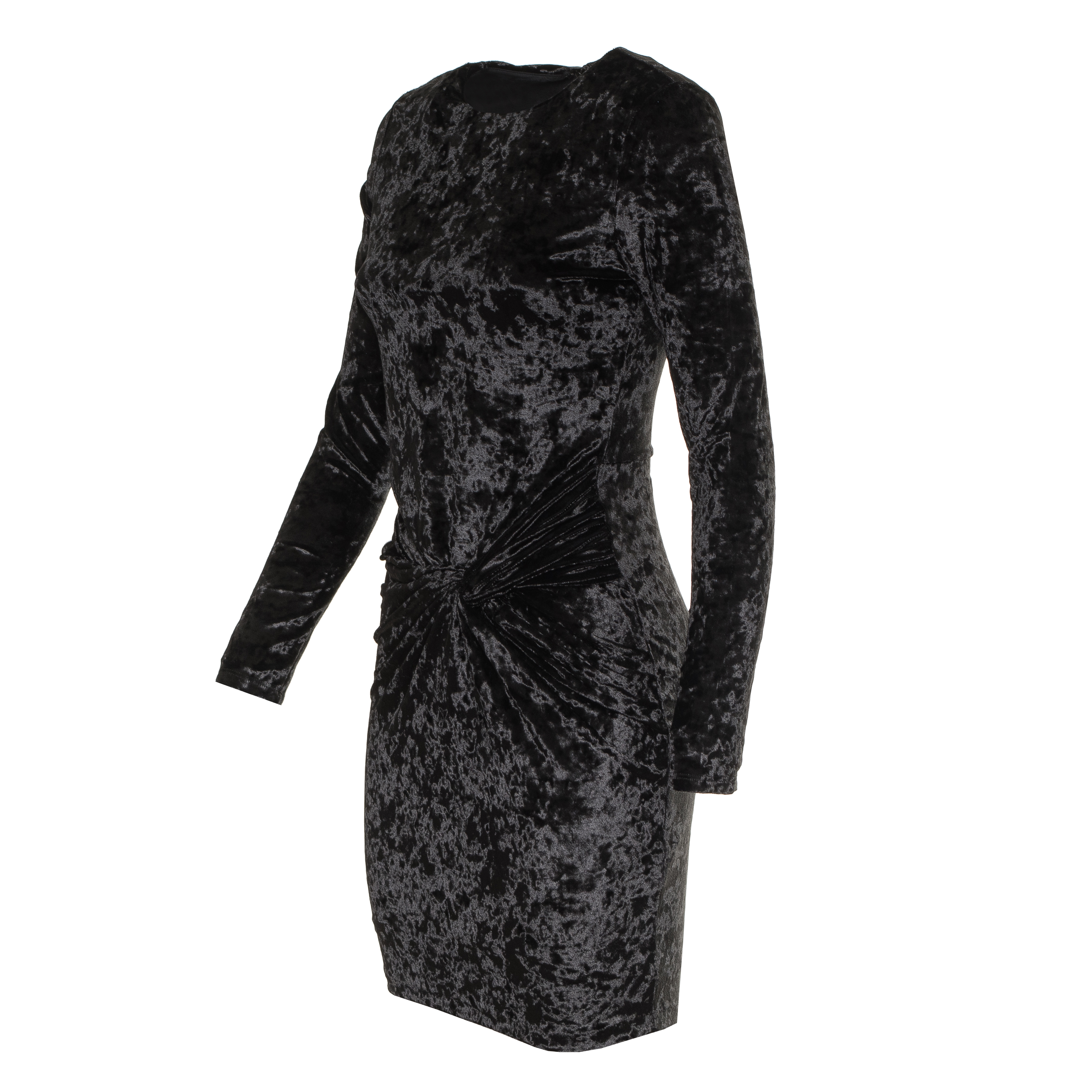 VESTIDO CORTO, MUJER, CUELLO REDONDO, MANGA LARGA, SOLO COLOR, CON LOGO